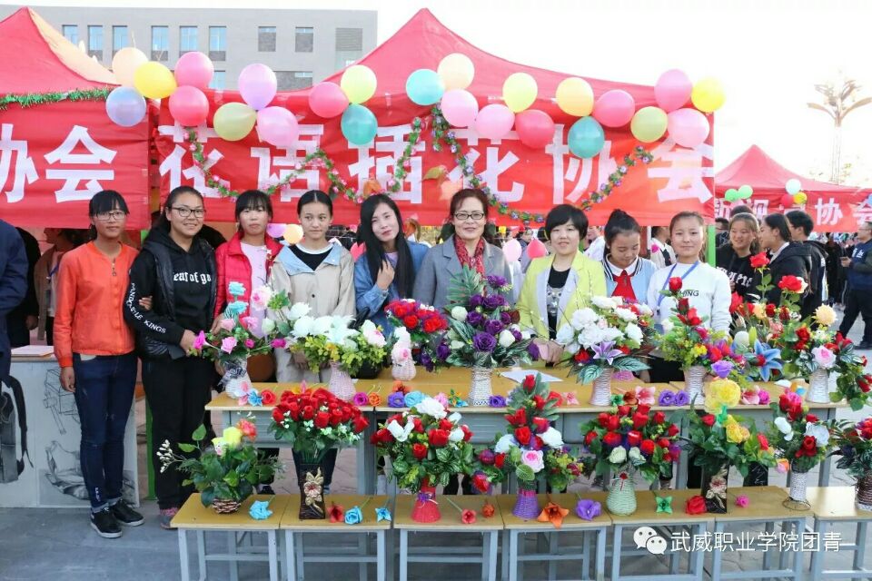 11 月8日,在武威職業(yè)學(xué)院社團(tuán)活動日,現(xiàn)代農(nóng)業(yè)技術(shù)系花語插花社會員、指導(dǎo)教師向廣大師生展示插花藝術(shù),讓大家在花藝中感受生活,讓插花藝術(shù)走進(jìn)教師、學(xué)生。