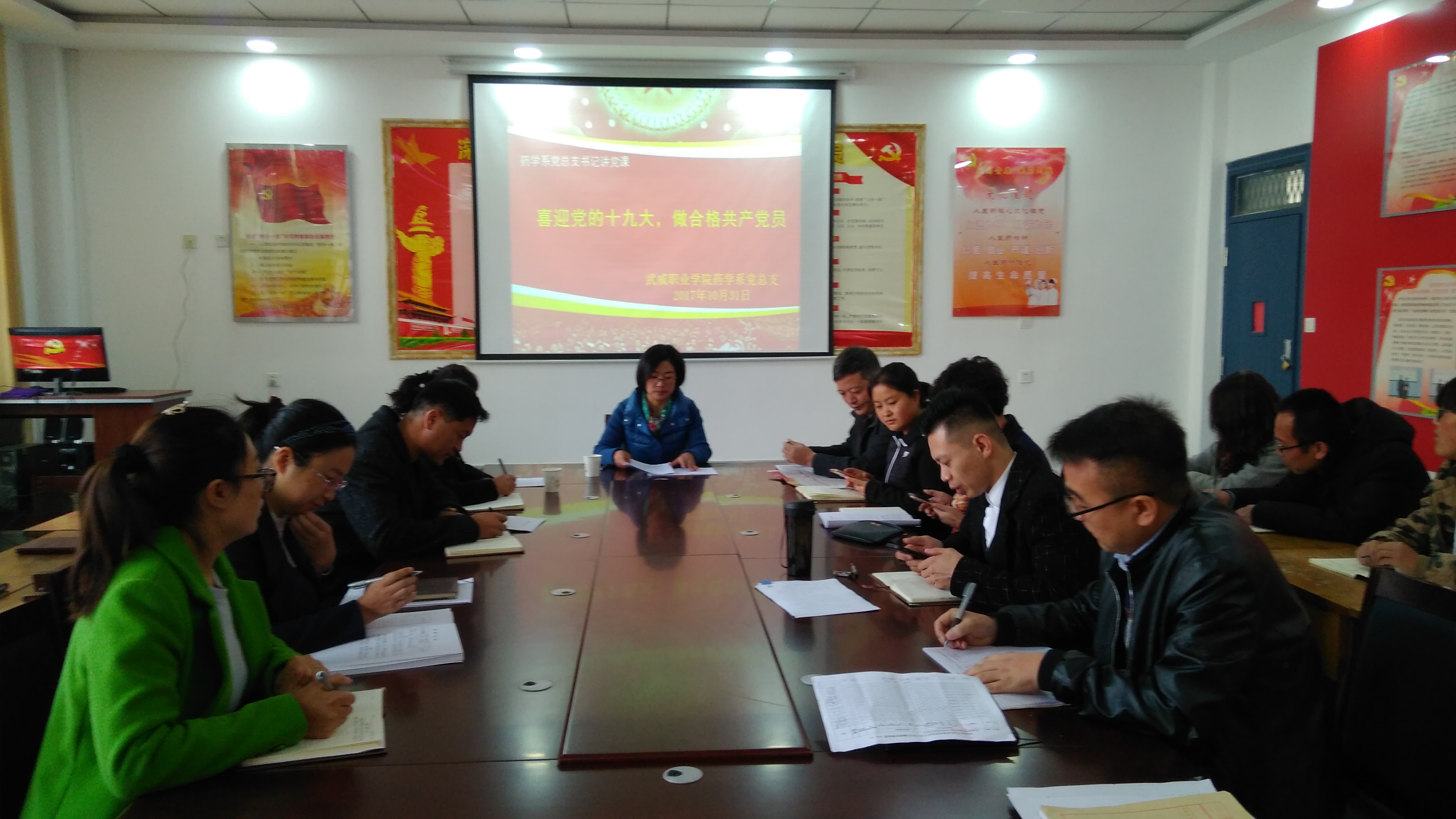 為深入學(xué)習(xí)宣傳貫徹十九大精神,10月31日,藥學(xué)系黨總支舉行了專題黨課學(xué)習(xí)活動(dòng)。組織人事處處長(zhǎng)、藥學(xué)系黨總支書記何毅為與會(huì)黨員作了專題報(bào)告。何毅以“喜迎黨的十九大,做合格共產(chǎn)黨員”為主題,從十九大報(bào)告中體現(xiàn)的新時(shí)代、新使命、新思想、新征程四個(gè)創(chuàng)新點(diǎn)入手,深刻而又生動(dòng)的講解了“黨的十九大報(bào)告重大理論問題”的內(nèi)容和深刻含義,并對(duì)黨員如何理解黨的十九大做出重要指導(dǎo)。藥學(xué)系全體黨員以及第十八期入黨積極分子培訓(xùn)班成員參加了專題黨課活動(dòng)。