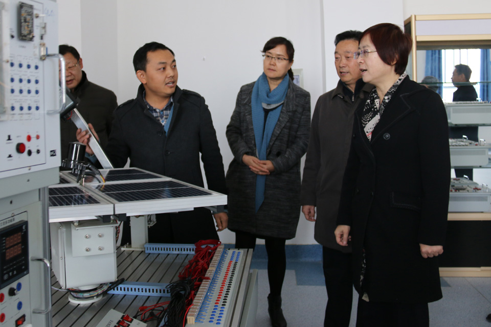 王海燕、王雁一行參觀了我院能源工程系熱工實驗室、電氣綜合實驗室、光伏發(fā)電系統(tǒng)實驗室、光伏發(fā)電系統(tǒng)仿真與測試實驗室、光伏器件生產(chǎn)實驗室和醫(yī)學(xué)實驗實訓(xùn)室、生命科技館、無紙化考試中心等地,就實驗實訓(xùn)設(shè)備的功能和在教學(xué)中的應(yīng)用做了詳細(xì)了解。