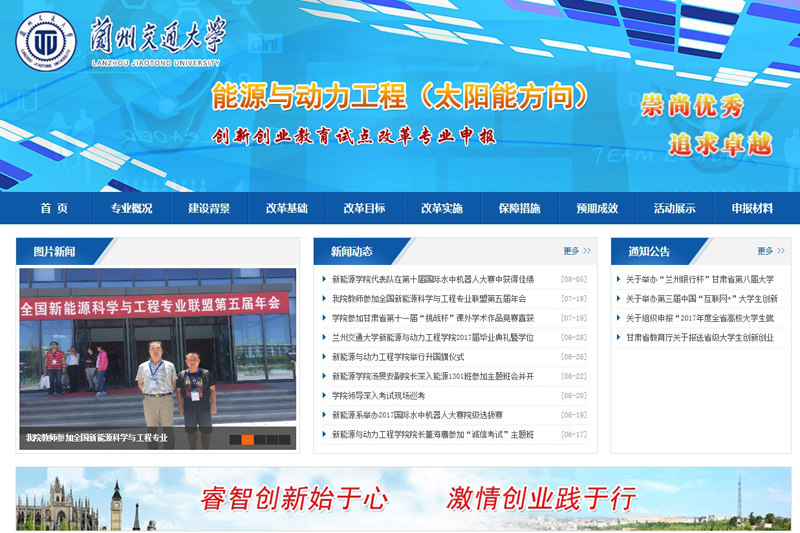 2017年度學(xué)院以平臺建設(shè)為抓手,積極開展專業(yè)建設(shè),取得重大進(jìn)展,以“深化內(nèi)涵發(fā)展、服務(wù)地方經(jīng)濟(jì)”為目標(biāo),積極開展校企合作,取得明顯實(shí)效。其中學(xué)院申報(bào)的能源與動(dòng)力工程專業(yè)獲批甘肅省創(chuàng)新創(chuàng)業(yè)試點(diǎn)改革專業(yè);與天合光能有限公司達(dá)成協(xié)議由其出資的“思源陽光”基金會每年提供5萬元的創(chuàng)新創(chuàng)業(yè)獎(jiǎng)學(xué)金;與北京海瑞克有限公司達(dá)成協(xié)議為新能源科學(xué)與工程專業(yè)的優(yōu)秀學(xué)生提供獎(jiǎng)學(xué)金;與北京群菱能源科技有限公司達(dá)成協(xié)議冠名贊助學(xué)院新能源開發(fā)與利用知識競賽;與蘭州海紅技術(shù)股份有限公司、甘肅建投武威新能源有限公司、中節(jié)能涼州發(fā)電公司等企業(yè)簽訂協(xié)議成立校外教學(xué)實(shí)習(xí)基地。