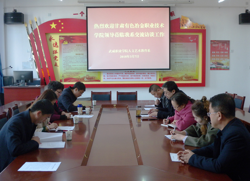 3月7日上午,甘肅有色冶金職業(yè)技術(shù)學(xué)院教育系負(fù)責(zé)人妙學(xué)春一行4人蒞臨我系進(jìn)行交流學(xué)習(xí),系黨總支書記胡靜峰、各教研室主任參加了會(huì)議。