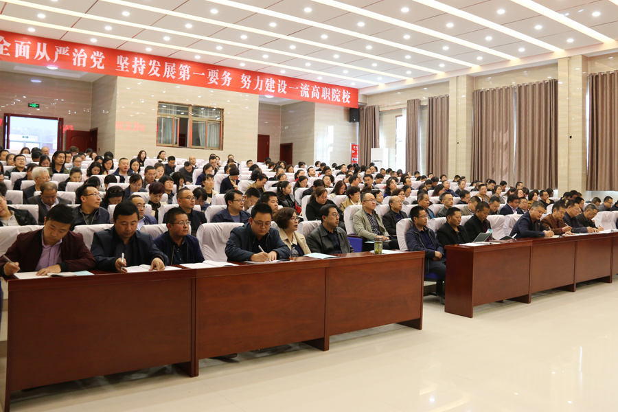 黨委副書記趙明對學(xué)院2017年教學(xué)工作做了簡要回顧與總結(jié),結(jié)合全國全省教育工作會議精神,深入分析了學(xué)院目前面臨的困難與存在的問題,從八個方面對2018年學(xué)院教學(xué)重點(diǎn)工作做了安排部署。一是加強(qiáng)思想政治建設(shè),貫徹落實(shí)中央決策部署。學(xué)習(xí)貫徹習(xí)近平新時代中國特色社會主義思想和黨的十九大精神,貫徹落實(shí)全國教育大會精神,細(xì)化落實(shí)職業(yè)教育具體工作措施。二是深化改革,增強(qiáng)辦學(xué)活力。堅持依法治校,繼續(xù)完善內(nèi)部治理體系,加強(qiáng)學(xué)術(shù)委員會、職稱評審委員會建設(shè),健全管理體系和運(yùn)行機(jī)制,大力推進(jìn)人才培養(yǎng)模式改革和招生考試制度改革。三是強(qiáng)化內(nèi)涵,全力推進(jìn)優(yōu)質(zhì)高職院校建設(shè)。抓實(shí)推進(jìn)優(yōu)質(zhì)高職院校6個模塊19個項目94項任務(wù)312條子任務(wù)的建設(shè)工作,加強(qiáng)內(nèi)部協(xié)調(diào),全力推進(jìn)。加強(qiáng)專業(yè)內(nèi)涵建設(shè)和實(shí)踐教學(xué)內(nèi)涵建設(shè),建立一批優(yōu)質(zhì)特色專業(yè)和一批高水平生產(chǎn)性實(shí)訓(xùn)基地;積極開展創(chuàng)新創(chuàng)業(yè)教育實(shí)踐活動,加大社會培訓(xùn)力度,積極探索開展國際合作與交流;加強(qiáng)智慧校園和校園文化建設(shè)。四是優(yōu)化結(jié)構(gòu),全力打造一批高水平優(yōu)質(zhì)特色專業(yè)。利用直屬附屬醫(yī)院、校辦企業(yè)武威泰豐新能源有限責(zé)任、甘肅(武威)國際陸港和武威保稅物流中心等優(yōu)勢,加快重點(diǎn)專業(yè)建設(shè)力度,打造3~5個國家級高水平優(yōu)質(zhì)特色專業(yè)。五是合作培養(yǎng),著力打造專兼結(jié)合的高水平教師隊伍。大力實(shí)施教師素質(zhì)提升工程,完善同濟(jì)大學(xué)編制的《武威職業(yè)學(xué)院師資能力提升培訓(xùn)方案》,落實(shí)西安交通大學(xué)、天津職業(yè)大學(xué)簽訂的合作協(xié)議,推進(jìn)教師教學(xué)發(fā)展中心建設(shè)與運(yùn)行,強(qiáng)化專業(yè)帶頭人、新進(jìn)教師、骨干教師、優(yōu)秀青年教師的培養(yǎng)力度。六是育人為本,關(guān)注學(xué)生成長成才。優(yōu)化育人環(huán)境,開足開好思想政治類、人文素養(yǎng)提升類課程,開展校內(nèi)職業(yè)技能競賽,鼓勵支持參加省級以上比賽,培養(yǎng)學(xué)生能力。七是深化產(chǎn)教融合,提升社會服務(wù)水平。充分發(fā)揮職業(yè)教育集團(tuán)作用,深化“職業(yè)教育+產(chǎn)業(yè)園區(qū)+生產(chǎn)基地”的校企合作模式;提升校辦企業(yè)、直屬附屬醫(yī)院的教學(xué)服務(wù)功能;各專業(yè)要拓展產(chǎn)教融合渠道,精準(zhǔn)施策,服務(wù)國家戰(zhàn)略。八是完善質(zhì)量保障機(jī)制,提升人才培養(yǎng)質(zhì)量。編制并逐步推行教學(xué)工作診斷與改進(jìn)方案,學(xué)習(xí)實(shí)施精細(xì)化管理模式,加大教學(xué)督查力度,規(guī)范教學(xué)秩序,提高教育教學(xué)管理水平。