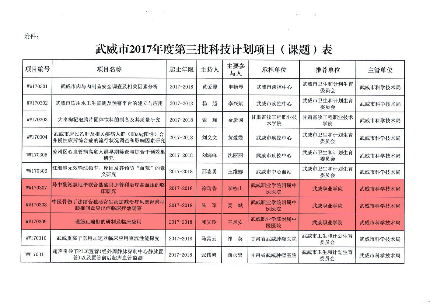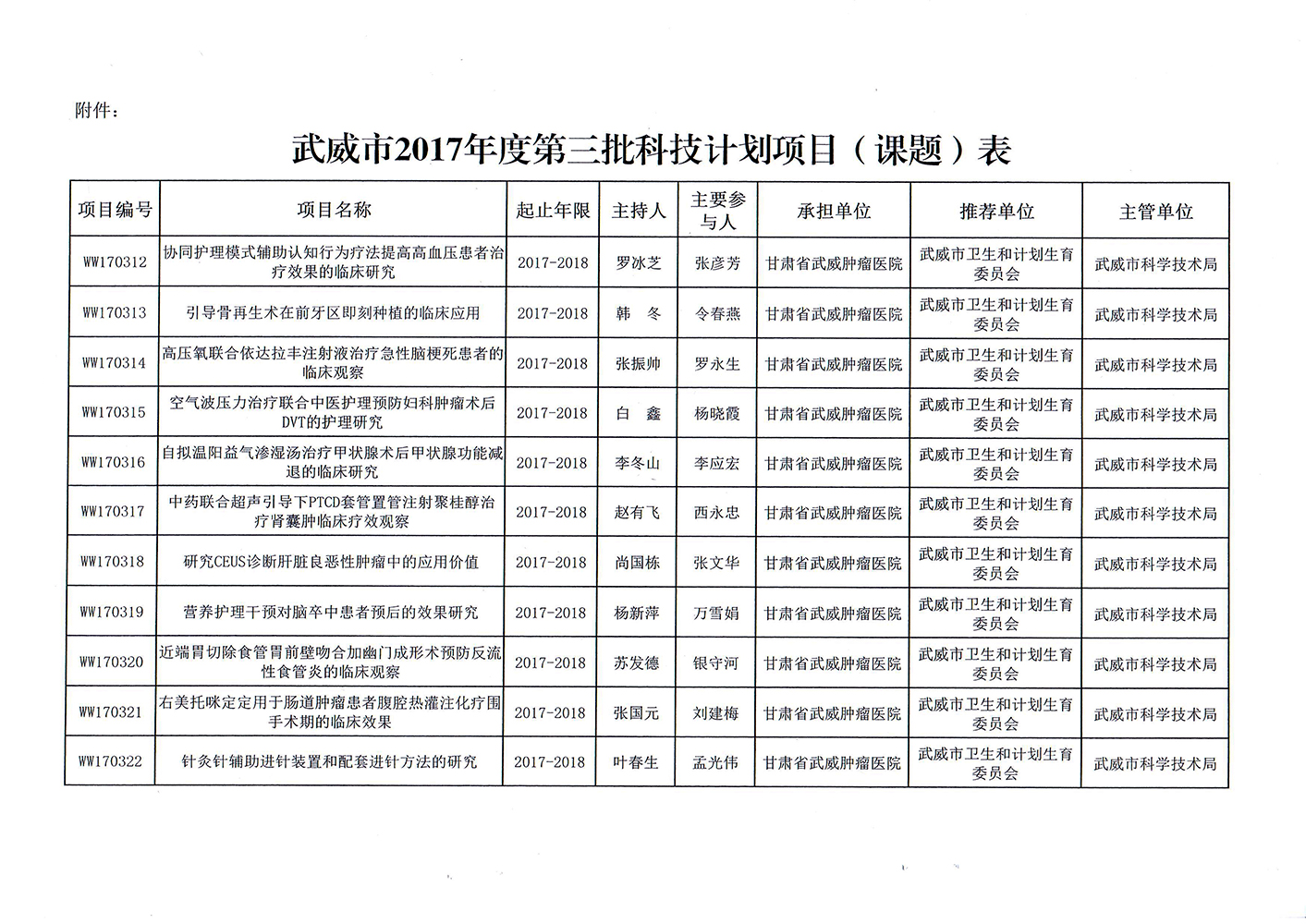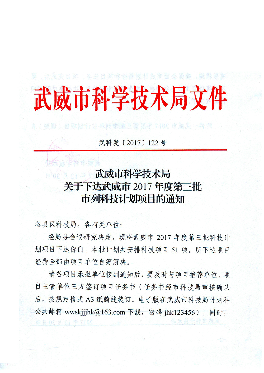 轉發(fā)武威市科學技術局關于下達武威市2017年度第三批市列科技計劃項目的通知