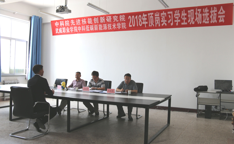 ? ? ? ?2018年6月21日,中國科學院先進核能創(chuàng)新研究院在學院舉行了2018年頂崗實習學生現(xiàn)場選撥會,由中科院先進核能創(chuàng)新研究院綜合管理部常務(wù)副主任王納秀、熔鹽機械部熱工組組長王曉和中科武威新能源研究所所長朱智勇組成的專家組對能源類專業(yè)和機械類專業(yè)學生進行了現(xiàn)場面試,遴選出的14名同學將于7月份前往中國科學院先進核能創(chuàng)新研究院進行為期一年的專業(yè)頂崗實習,他們將在中科院先進核能創(chuàng)新研究院專家教授的帶領(lǐng)下,通過一對一指導(dǎo)和崗位輪訓(xùn)等形式全面系統(tǒng)完成頂崗實習,了解行業(yè)技術(shù)需求和技術(shù)最新進展,掌握更多的專業(yè)知識和實踐技能,感受頂級科研院所深厚的科技氛圍和文化氛圍,全面提升專業(yè)水平和綜合素養(yǎng),為成功走向社會奠定良好的基礎(chǔ)。