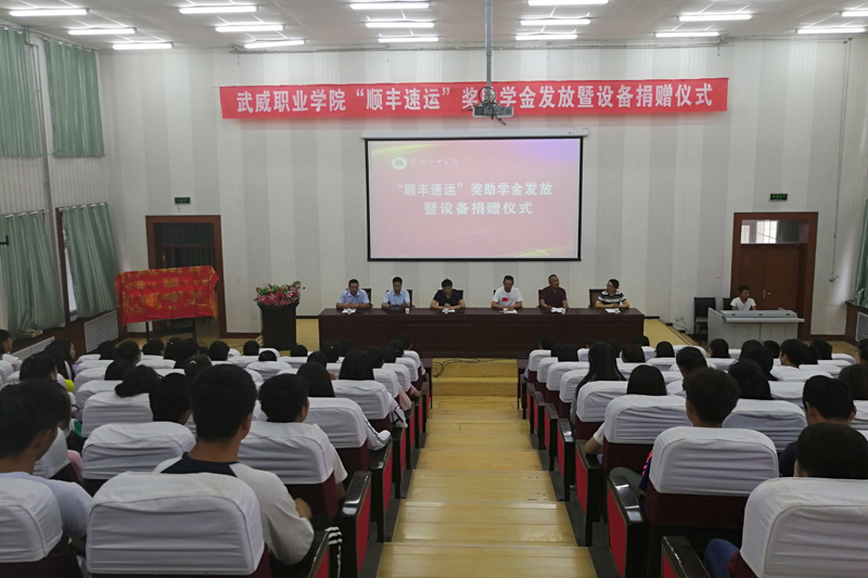 6月26日,武威職業(yè)學(xué)院“順豐速運(yùn)”獎助學(xué)金發(fā)放暨設(shè)備捐贈儀式在學(xué)院正德廳舉行。江蘇順豐速運(yùn)江蘇順豐通訊服務(wù)有限公司副總經(jīng)理張輝華先生,武威職業(yè)學(xué)院黨委委員、副院長王永緒同志、江蘇順豐通訊服務(wù)有限公司人力資源部經(jīng)理孫潞、項(xiàng)目經(jīng)理高國軍、招聘經(jīng)理明微、經(jīng)濟(jì)管理系書記潘從民、主任張伯成、物流專業(yè)教師代表和物流專業(yè)16、17級全體同學(xué)及相關(guān)專業(yè)學(xué)生代表近200人參加本次儀式。發(fā)放儀式由潘從民主持。