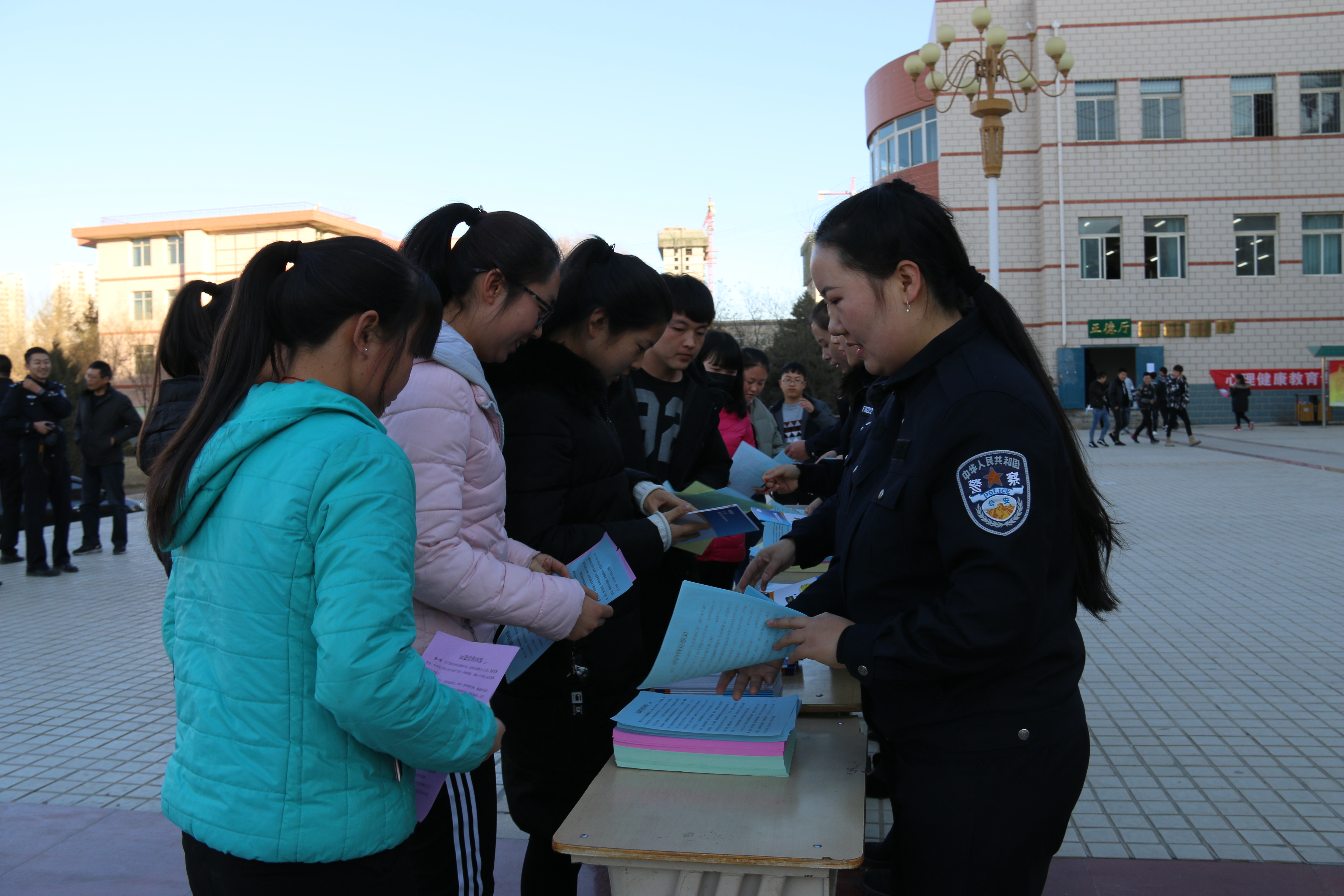活動中,民警向我院師生散發(fā)了反恐防恐安全知識手冊和《反恐怖主義法》宣傳材料,播放了公民防范恐怖襲擊宣傳影像資料。