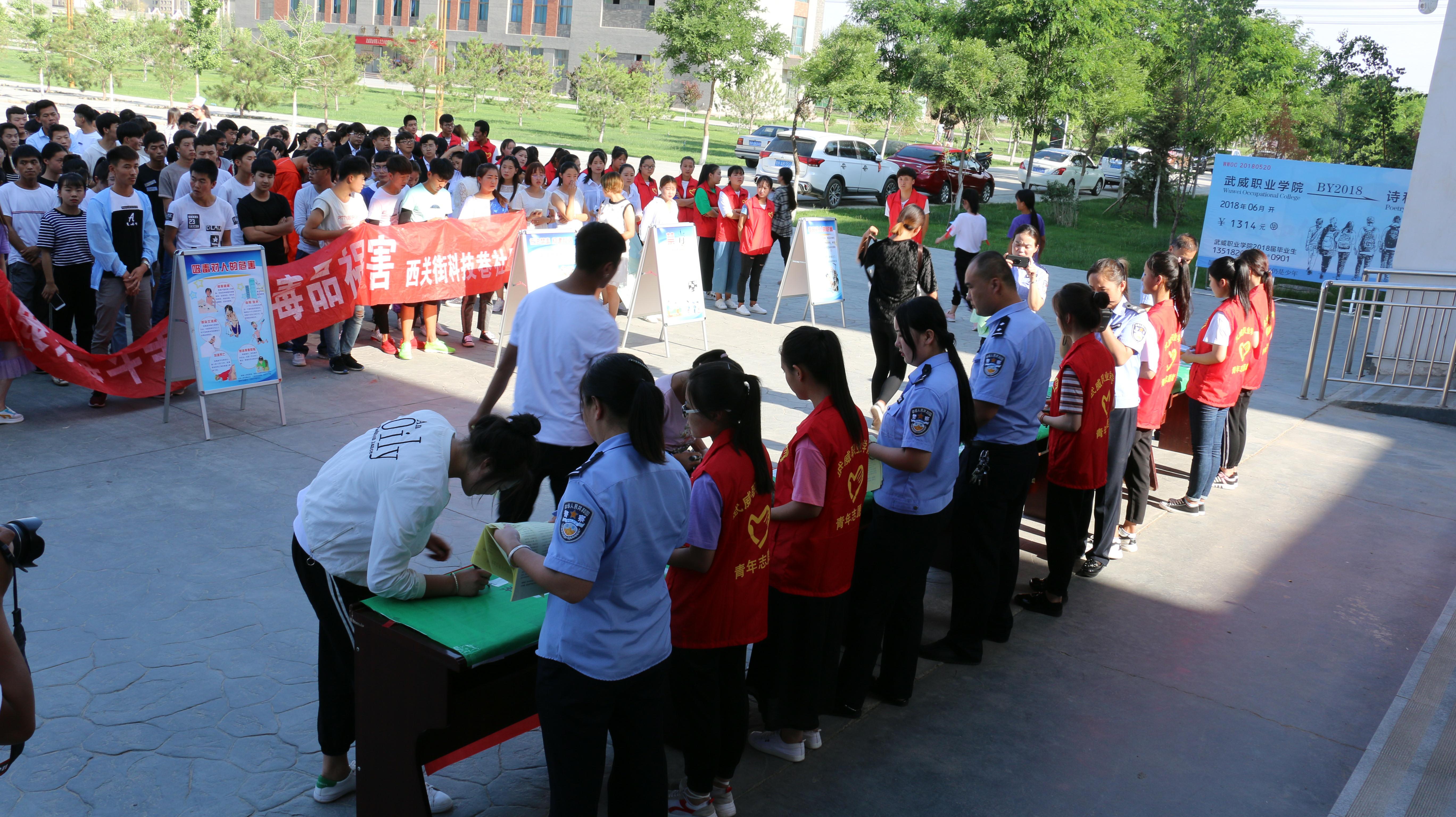 6月26日上午,學(xué)院組織50多名禁毒志愿者參加了全市“6.26”國(guó)際禁毒日大型主題宣傳活動(dòng)。下午,學(xué)院相關(guān)部門聯(lián)合轄區(qū)派出所在大學(xué)生活動(dòng)中心前舉行了“6.26”國(guó)際禁毒日主題宣傳活動(dòng)。