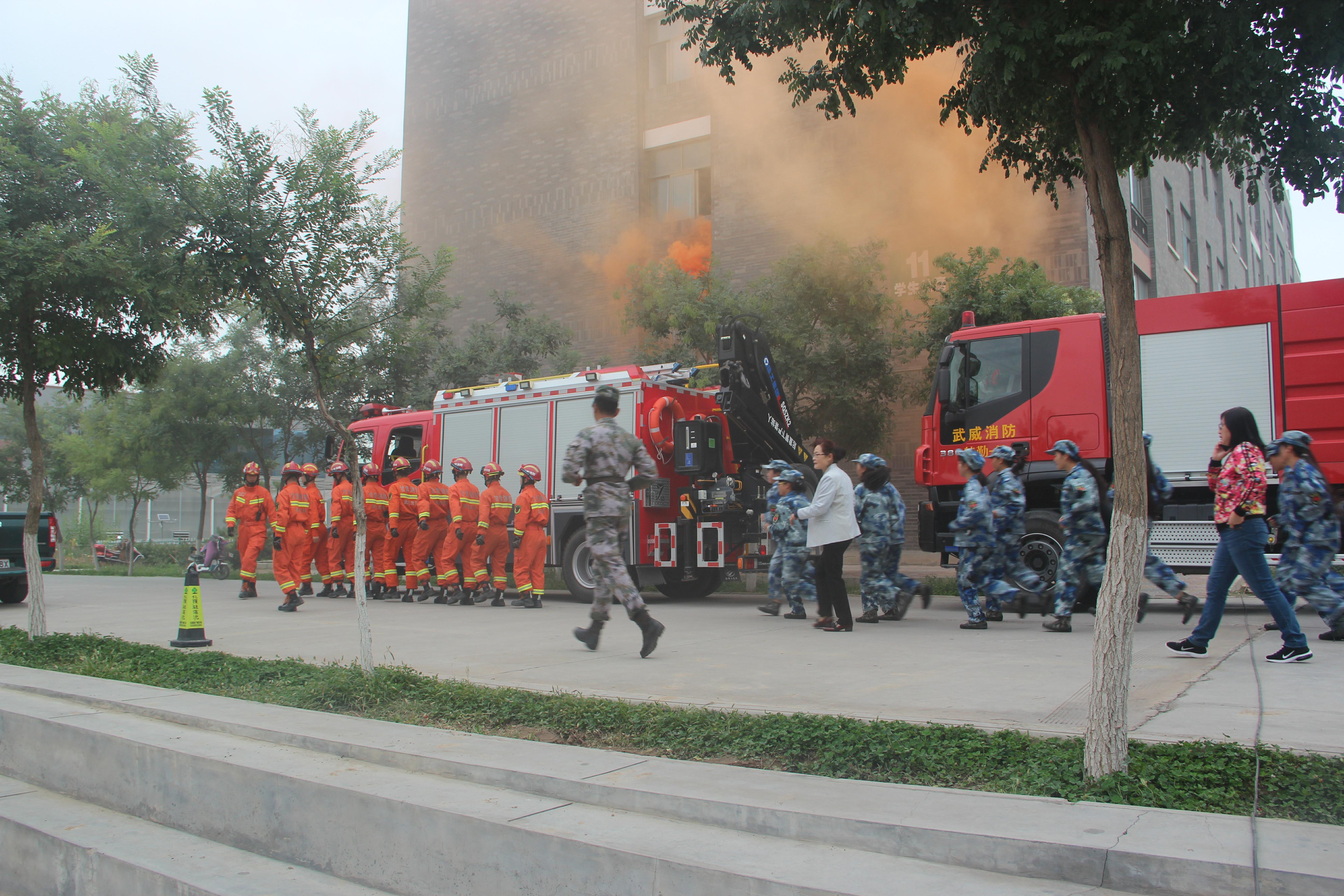 為進(jìn)一步加強(qiáng)校園安全工作,增強(qiáng)師生的消防安全意識(shí),提高師生抵御火災(zāi)和應(yīng)對緊急突發(fā)事件的能力,9月13日上午,學(xué)院聯(lián)合武威市公安消防支隊(duì)舉行了2018年秋季消防應(yīng)急疏散演練。學(xué)院副院長王永緒及相關(guān)部門、單位負(fù)責(zé)同志現(xiàn)場觀摩,約4000名2018級新生、學(xué)生管理工作人員、軍訓(xùn)教官、食堂從業(yè)人員參加了演練?。