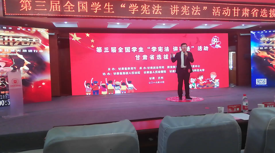 10月15日至19日,由省教育廳主辦的第三屆全國(guó)學(xué)生“學(xué)憲法講憲法”活動(dòng)甘肅省選拔賽在甘肅政法學(xué)院舉行,來自全省的127名選手參加比賽。省教育廳副廳長(zhǎng)趙凱出席頒獎(jiǎng)儀式并為獲獎(jiǎng)集體和個(gè)人頒獎(jiǎng)。