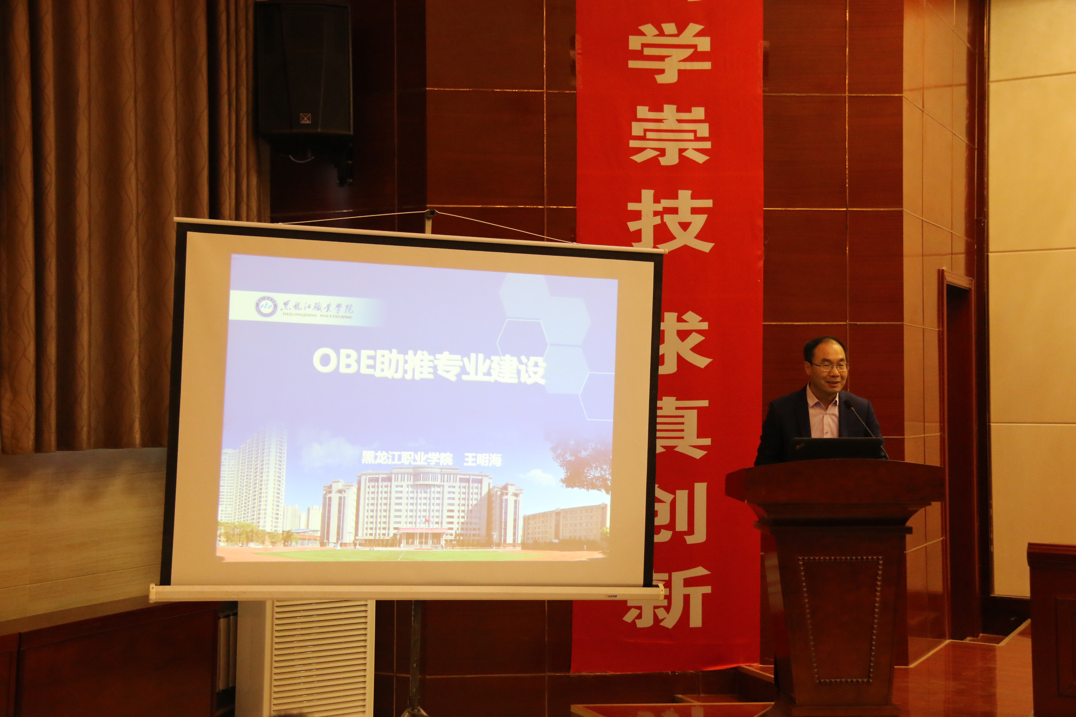 王明海教授以“成果導(dǎo)向教育(OBE)助推專業(yè)建設(shè)”為題作了專題報(bào)告。他結(jié)合自身多年的實(shí)踐經(jīng)驗(yàn)和研究成果向與會(huì)者回顧了黑龍江職業(yè)學(xué)院成果導(dǎo)向課程開(kāi)發(fā)歷程,從定義成果、設(shè)計(jì)課程到教學(xué)授課、評(píng)定結(jié)果、決定進(jìn)階五個(gè)方面系統(tǒng)闡述了成果導(dǎo)向課程開(kāi)發(fā)與實(shí)施路徑,為參會(huì)高職院校教學(xué)改革提供了參考方向。