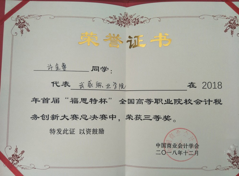 我院學(xué)生在首屆 “福思特杯”全國大學(xué)生會計稅務(wù)創(chuàng)新大賽總決賽中喜獲佳績