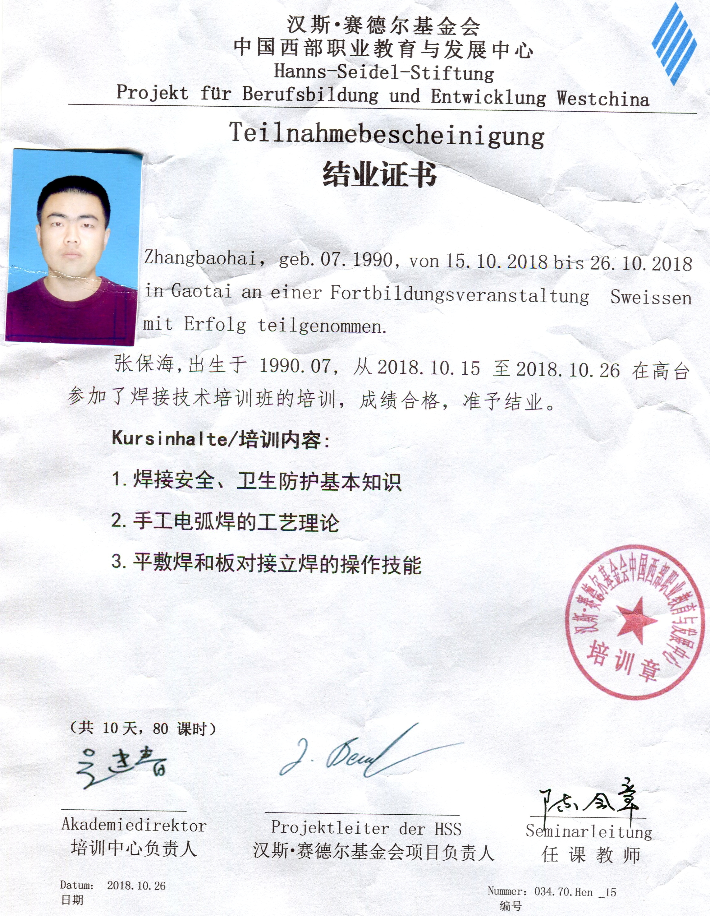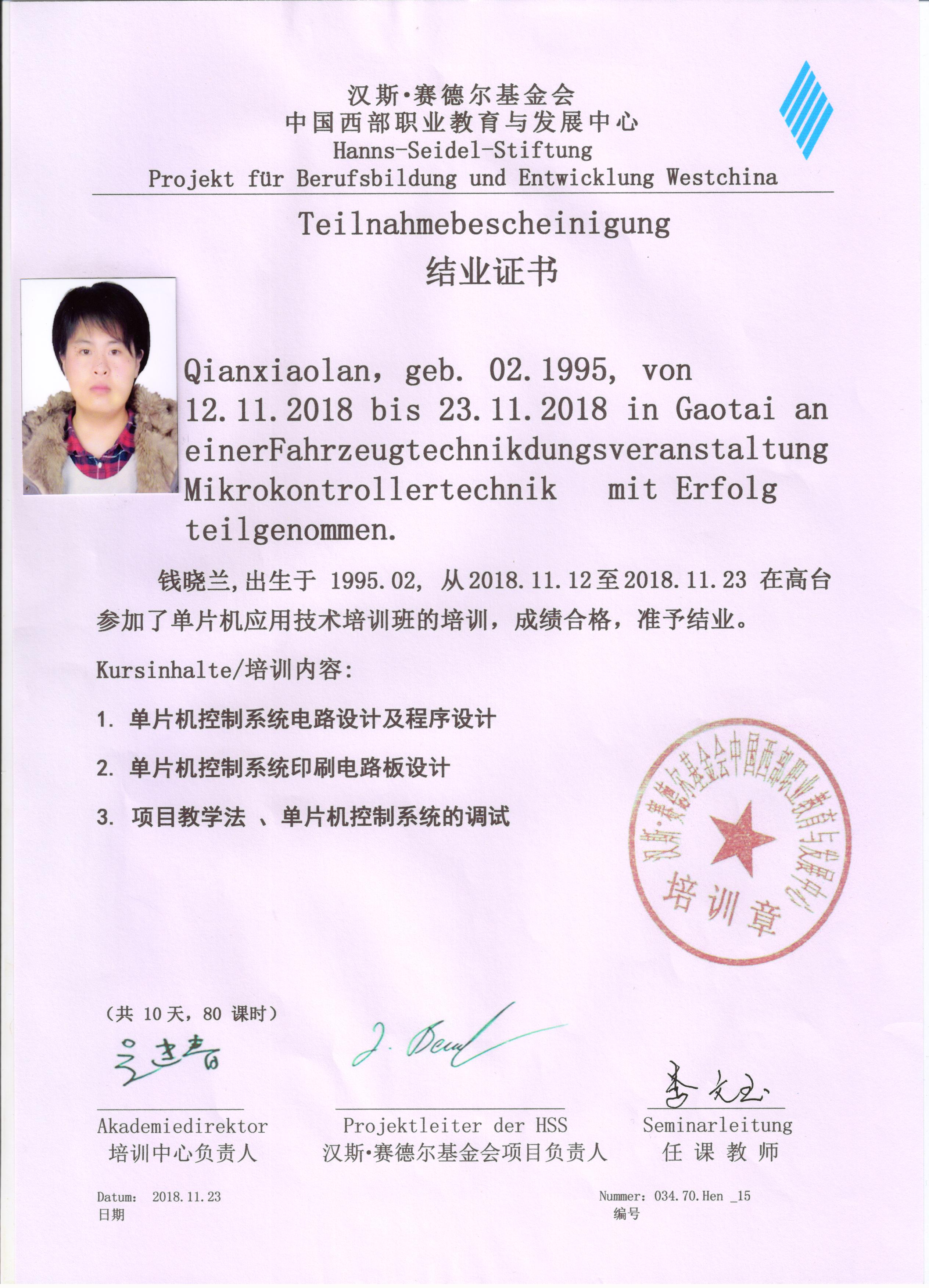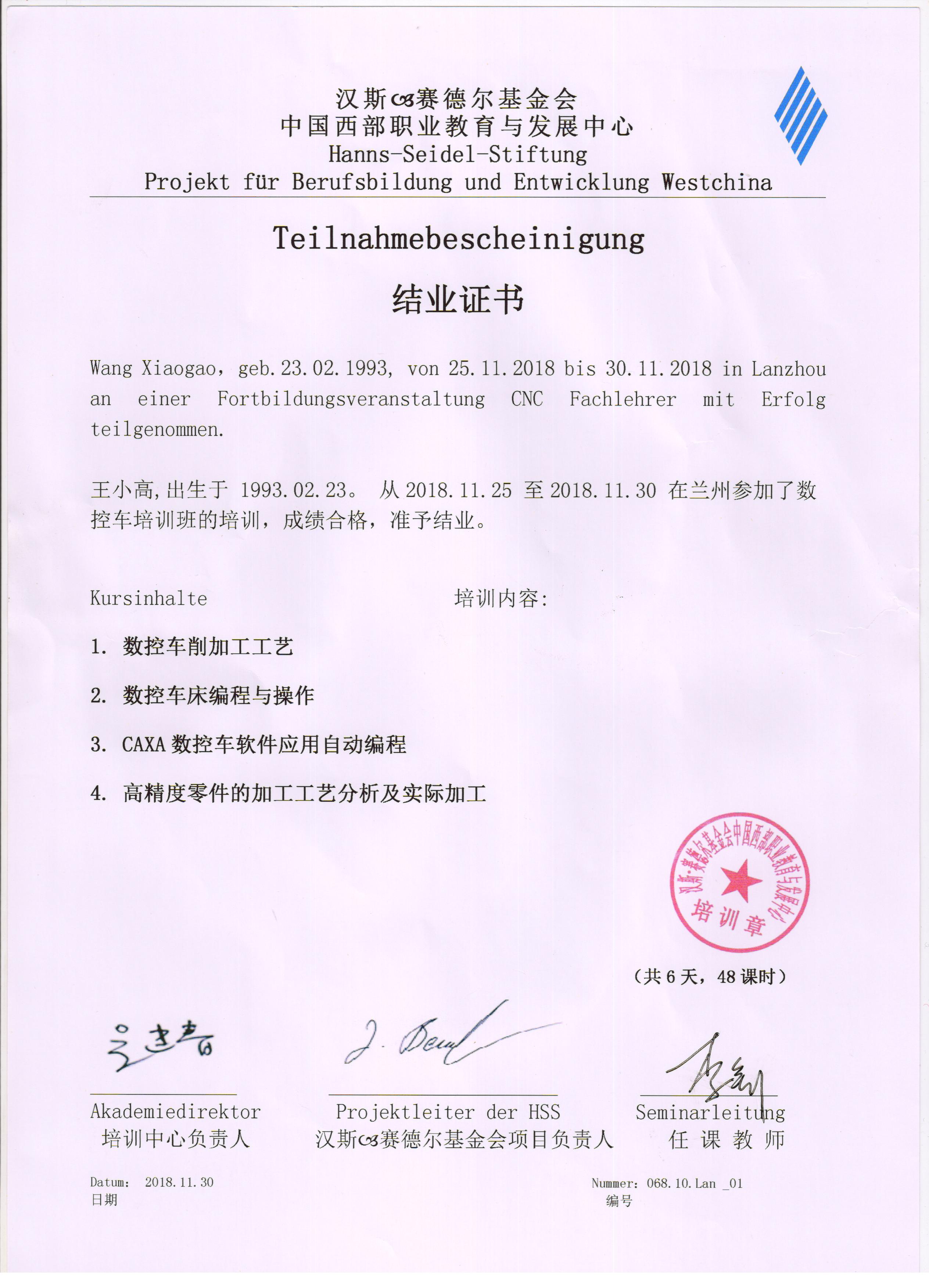 參加德國漢斯?賽德爾基金會(huì)職業(yè)院校2018年秋季培訓(xùn)