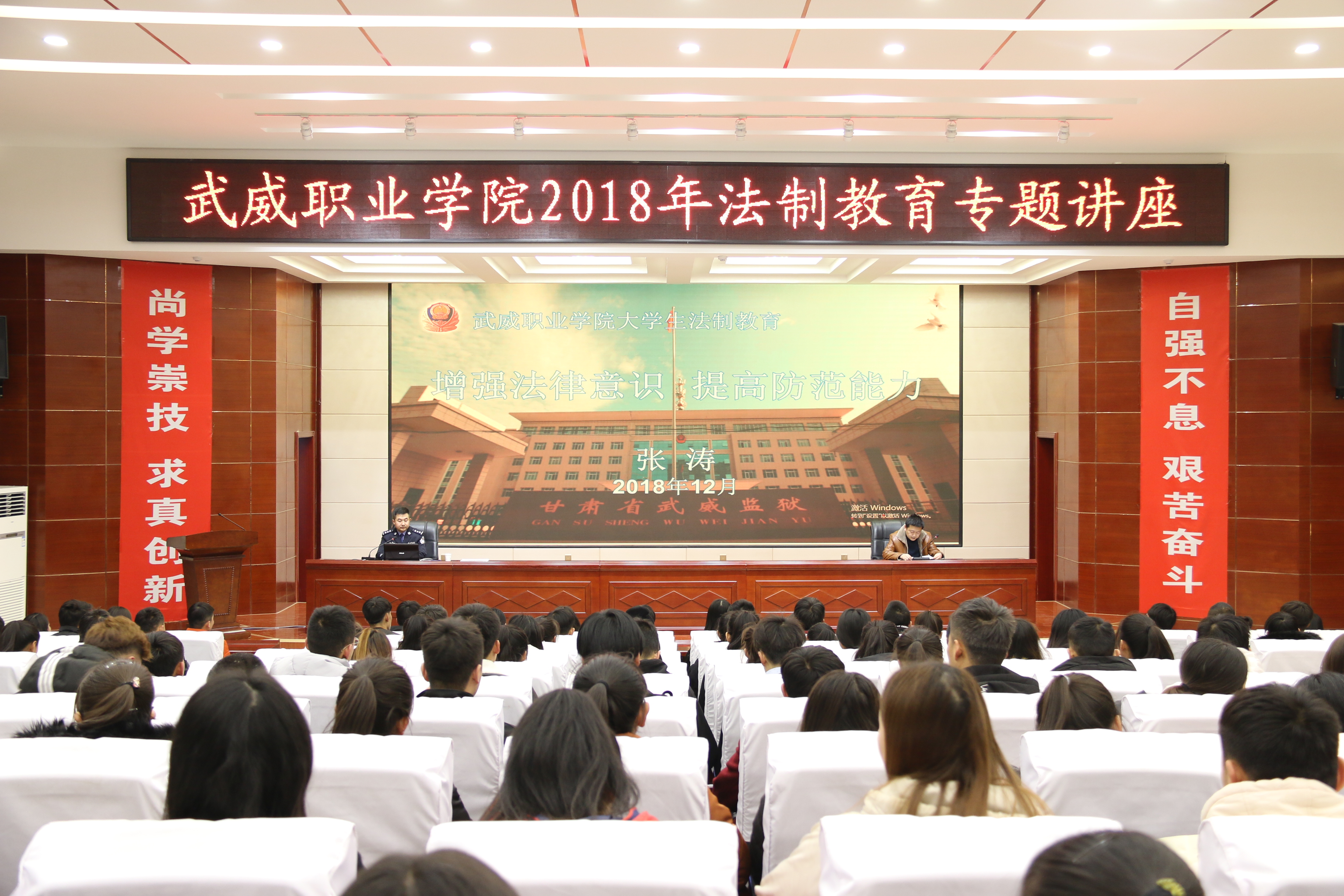 講座邀請了甘肅省武威監(jiān)獄第七監(jiān)區(qū)副監(jiān)區(qū)長張濤警官主講。講座采取以案說法、以案學法、以法警示的方式,圍繞校園欺凌、網(wǎng)絡詐騙、校園貸等熱點問題,分析了目前青少年違法犯罪的現(xiàn)狀,闡釋了法律對于維護社會秩序、影響人們生活的重要性,深入淺出地講解了大學生應該如何遵紀守法、如何預防犯罪、如何防止不法侵害、打擊犯罪及自我防范的一些基本方法,教導同學們要增強法律意識,提高防范能力,做一名知法、懂法、守法、用法的合格公民。