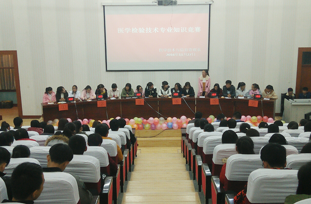 為提高學(xué)生對(duì)專業(yè)知識(shí)的掌握水平,培養(yǎng)主動(dòng)學(xué)習(xí)的良好學(xué)風(fēng),11月27日晚,醫(yī)學(xué)技術(shù)與信息管理系在尚德樓正德廳舉行醫(yī)學(xué)檢驗(yàn)技術(shù)專業(yè)知識(shí)競(jìng)賽。系主任楊如松,學(xué)院組織人事處副處長(zhǎng)魏全民,系全體行政人員,醫(yī)學(xué)檢驗(yàn)技術(shù)教研室主任、任課教師及檢驗(yàn)專業(yè)全體班主任、學(xué)生代表參加本次活動(dòng)。