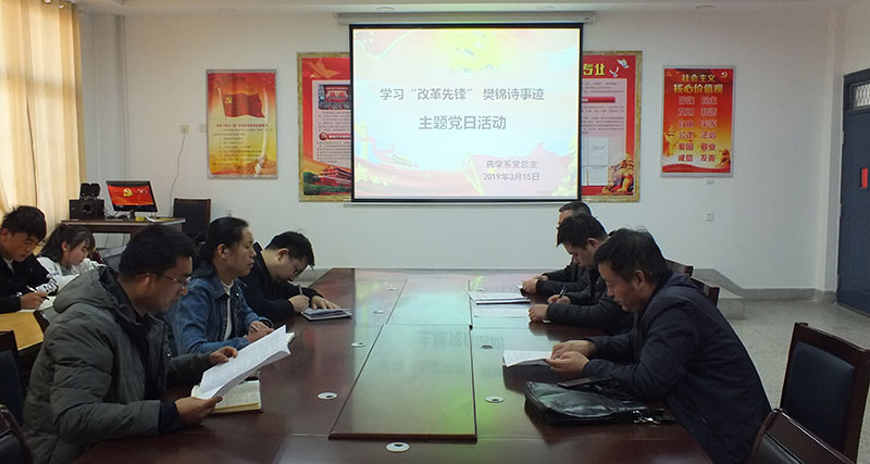 為響應(yīng)榜樣號召,傳承時代精神,3月15日,藥學(xué)系黨總支組織全體黨員在明遠樓103黨員活動室,開展了學(xué)習(xí)“改革先鋒”樊錦詩先進事跡主題黨日活動。藥學(xué)系主任魏潤明參加了此次活動,藥學(xué)系黨總支副書記單光年主持活動。