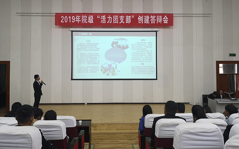 為深化實(shí)施高校基層團(tuán)支部“活力提升”工程,學(xué)院團(tuán)委于近期開展了2019年院級(jí)“活力團(tuán)支部”創(chuàng)建評選活動(dòng),3月29日下午在正德廳舉行了創(chuàng)建答辯會(huì),院團(tuán)委干部和各系分團(tuán)委副書記擔(dān)任評委,2018級(jí)全體團(tuán)支部書記觀摩了答辯會(huì)。