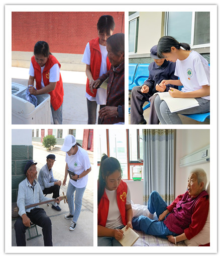 本次活動(dòng)圍繞養(yǎng)老主題分別調(diào)研了城郊鄉(xiāng)鎮(zhèn)懷安鎮(zhèn)、經(jīng)濟(jì)條件較好的武南鎮(zhèn)、地理位置偏遠(yuǎn)并且是深度貧困的張義鎮(zhèn)、少數(shù)民族鄉(xiāng)鎮(zhèn)抓喜秀龍鄉(xiāng)、移民搬遷點(diǎn)西靖鎮(zhèn)以及武威目前規(guī)模最大的社會(huì)化養(yǎng)老中心幸業(yè)養(yǎng)老中心。實(shí)踐團(tuán)以“開展座談——入戶宣傳調(diào)查——親情陪伴——整理分析養(yǎng)老數(shù)據(jù)”開展了實(shí)踐活動(dòng)。