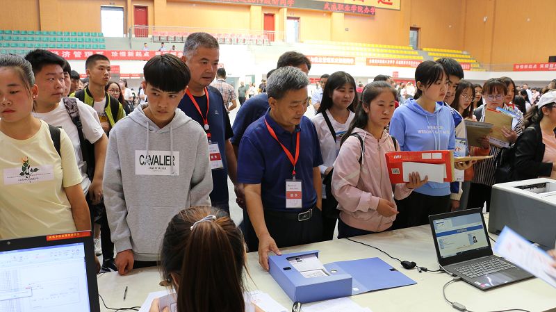 學院安排專車前往武威火車站、汽車站,為新生及家長提供全天候接站服務(wù),并為送行家長專設(shè)了休息區(qū)。安保人員指揮車輛有序停放,保障安全有序的校園環(huán)境。工作人員引導新生辦理入校手續(xù),報到、繳費、入班、物品發(fā)放等各個環(huán)節(jié)有條不紊、高效暢通。體育館的電子屏上不斷播放學院宣傳片、大型公益短片,增強了新生及家長對學院的了解、認可和熱愛。為幫助家庭經(jīng)濟困難學生順利入學,學院還設(shè)立了“綠色通道”服務(wù)點,為家庭經(jīng)濟困難學生辦理緩交(減免)學費和生源地信用助學貸款登記手續(xù)。