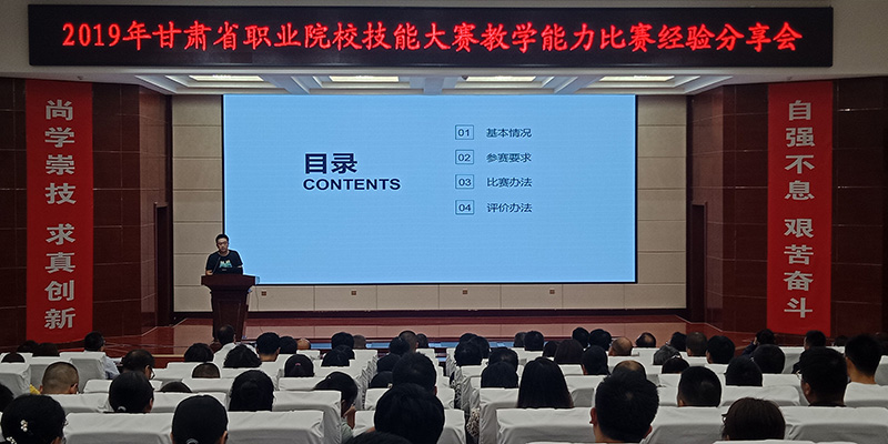 2019年全省職業(yè)院校技能大賽教學能力比賽于7月1日至7月5日在甘肅省交通職業(yè)技術學院舉行,學院6件作品23名教師參加比賽,并取得了優(yōu)異的成績。7月8日學院舉辦了比賽經(jīng)驗分享會,各相關部門、單位負責人、中青年骨干教師、兼職教師、教務處和項目辦相關人員共210多名教師參加。
