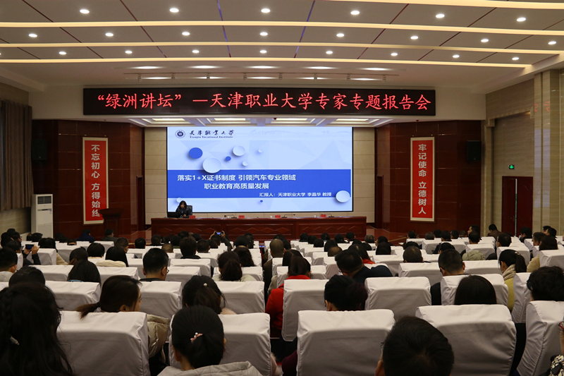 報(bào)告會(huì)上,天津職業(yè)大學(xué)副校長楊榮敏、天津職業(yè)大學(xué)合作教育辦公室王昆教授、天津職業(yè)大學(xué)汽車工程學(xué)院院長、博士、汽車維修技師李晶華教授分別做了題為《魯班工坊——中國職業(yè)教育國際知名品牌》《產(chǎn)業(yè)學(xué)院融入思政元素路徑與實(shí)踐》《落實(shí)1+X證書制度,引領(lǐng)汽車專業(yè)領(lǐng)域職業(yè)教育高質(zhì)量發(fā)展》的報(bào)告。學(xué)院領(lǐng)導(dǎo)和副科級(jí)以上中層管理干部、各系教研室主任、骨干教師、青年教師代表參加報(bào)告會(huì)。
