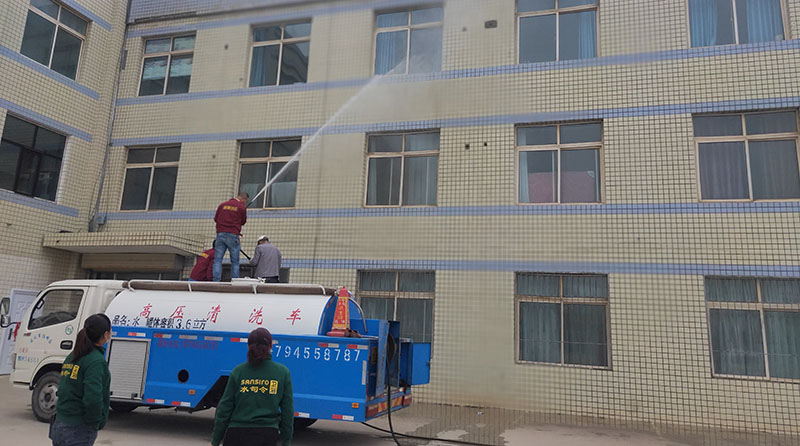 在行動現(xiàn)場,老師們和保潔人員手拿水桶、笤帚、抹布,認真清洗道路邊花壇、路沿石、配電箱、垃圾桶等服務設施,仔細擦拭路標路牌,認真清掃道路垃圾。并對沿街建筑物(崇技樓)外立面、窗戶、門頭牌匾進行高壓清洗。經(jīng)過徹底清洗,道路清潔有序,路標路牌煥然一新,各類花草樹木青翠欲滴,設施設備亮麗如新。