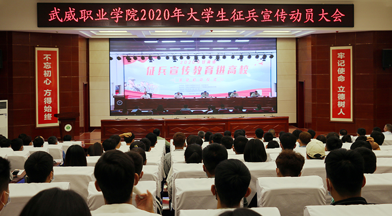 6月10日上午,學(xué)院2020年大學(xué)生征兵宣傳動員大會在菁英廳舉行。武威軍分區(qū)司令員張國輝、武威軍分區(qū)動員處處長劉忠、涼州區(qū)人武部部長闞延貴、涼州區(qū)人武部政委丁俊強,學(xué)院黨委書記、院長趙明,副院長何毅出席會議。各院系負責人、輔導(dǎo)員和學(xué)生代表共200人參加了會議。會議由副院長王守云主持。