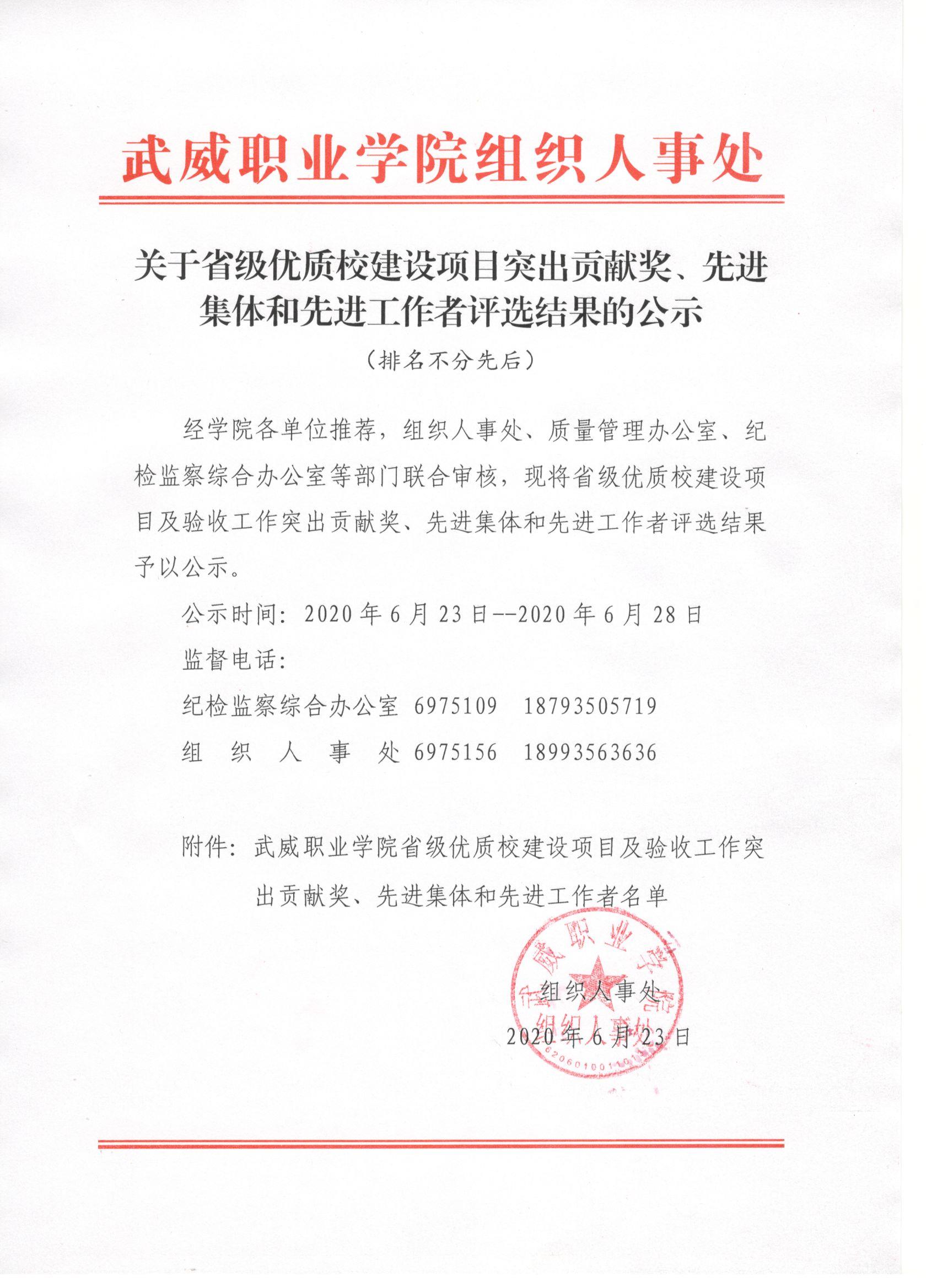 關(guān)于省級優(yōu)質(zhì)校建設(shè)項(xiàng)目突出貢獻(xiàn)獎(jiǎng)、先進(jìn)集體和先進(jìn)工作者評選結(jié)果的公示
