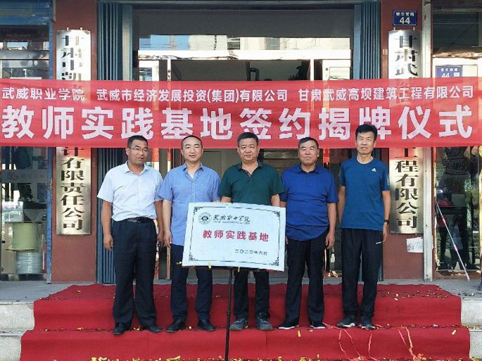 2020年8月9日,學(xué)院聯(lián)合武威市經(jīng)濟(jì)發(fā)展(集團(tuán))有限公司、甘肅武威高壩建筑工程有限公司,在甘肅武威高壩建筑工程有限公司大樓前舉行武威職業(yè)學(xué)院教師實(shí)踐基地簽約揭牌儀式。學(xué)院黨委書記、院長(zhǎng)趙明,基建處負(fù)責(zé)人賈龍,建筑工程系副主任蔡濟(jì)眾,黨建負(fù)責(zé)人孫潤(rùn)元;武威市經(jīng)濟(jì)發(fā)展(集團(tuán))有限公司董事長(zhǎng)崔國(guó)斌、副董事長(zhǎng)董英,甘肅武威高壩建筑工程有限公司總經(jīng)理周勝年出席簽約揭牌儀式。