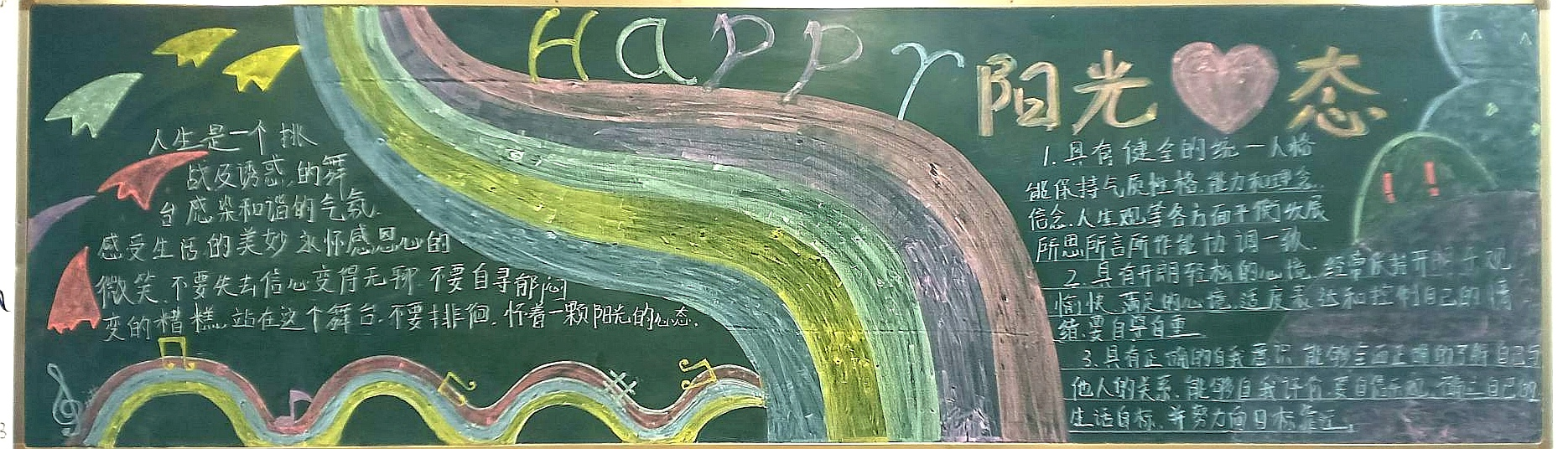 為進(jìn)一步提高大學(xué)生的心理素質(zhì),促進(jìn)大學(xué)生的身心健康和諧,宣傳普及心理健康知識(shí),深入開展心理健康教育,我系結(jié)合學(xué)院特點(diǎn),突出專業(yè)優(yōu)勢(shì),在積極承擔(dān)和參與學(xué)校心理健康活動(dòng)月的團(tuán)日活動(dòng)的同時(shí),各班開展了豐富多彩的以“心理健康”為主題的黑板報(bào)。