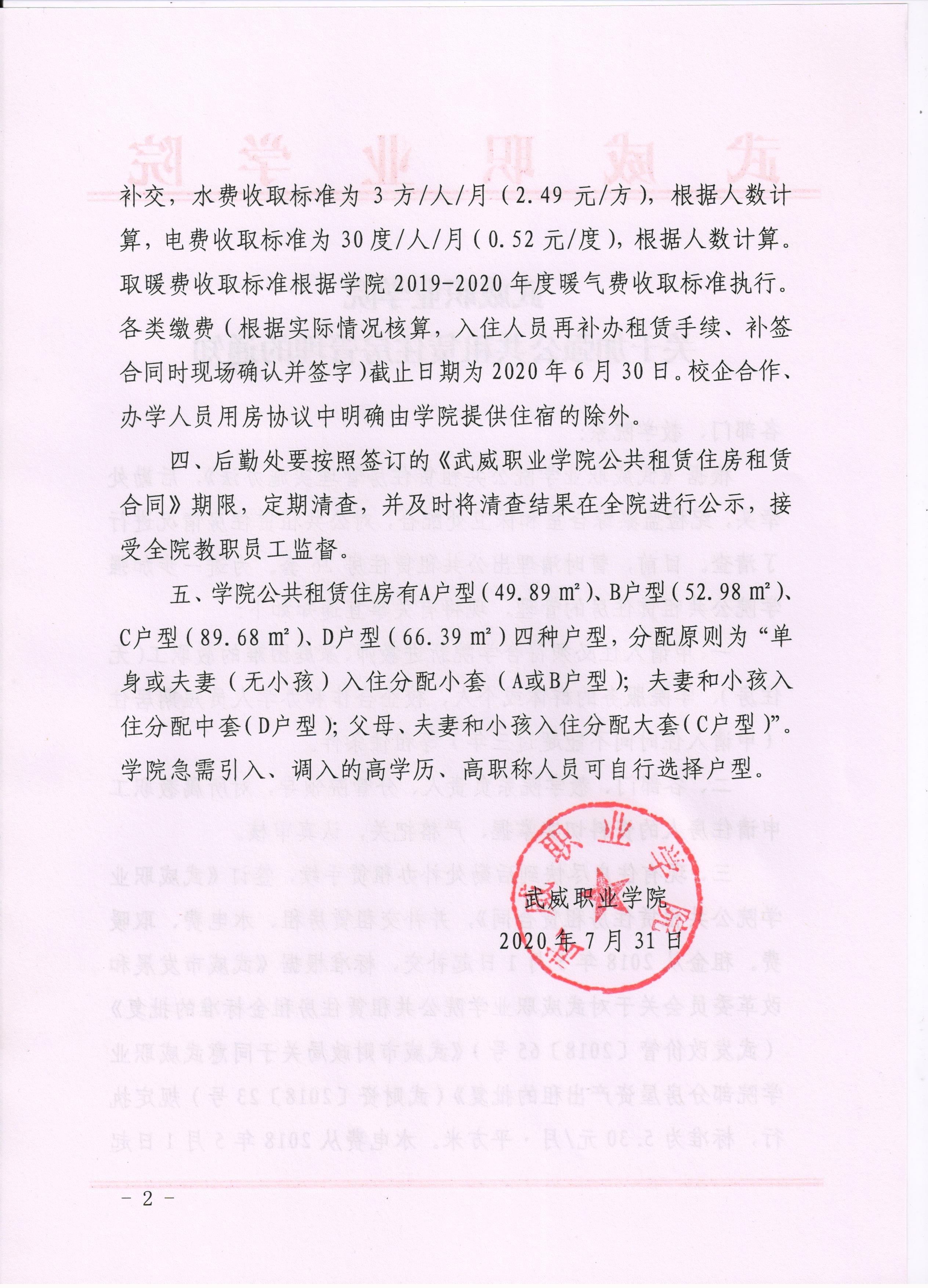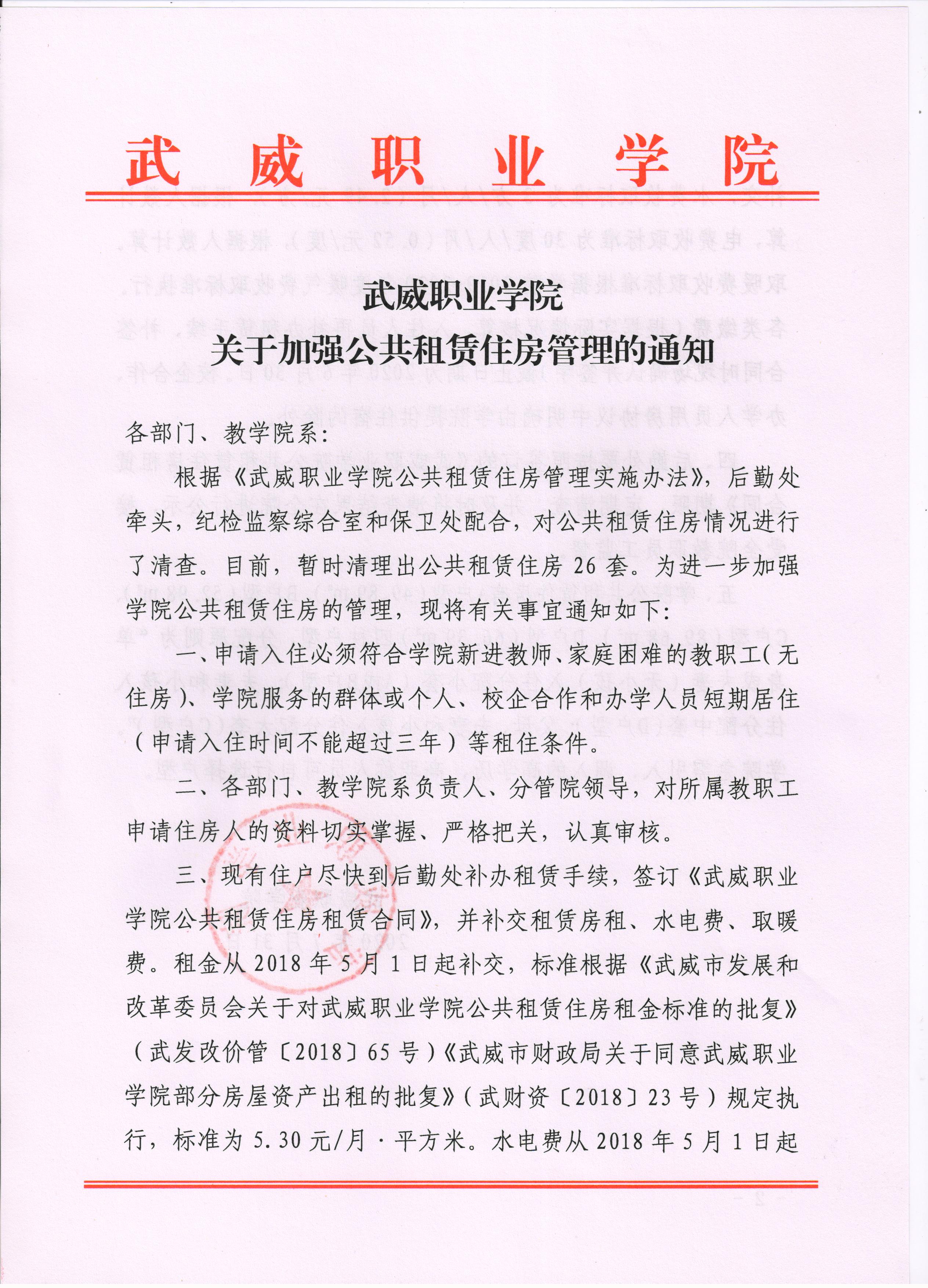《武威職業(yè)學院關于加強公共租賃住房管理的通知》