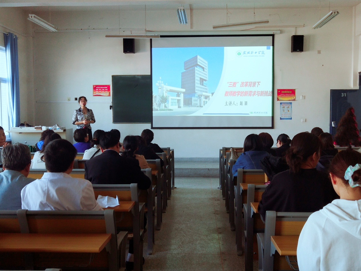 赴揚州參加學習的護理系基礎(chǔ)教研室教師趙穎就8月16日至22日期間的學習內(nèi)容向大家作了詳細匯報。此次匯報的內(nèi)容主要包括題目解析和“三教”改革的對策與舉措兩大部分。趙穎借助PPT,通過生動的語言,詳實的例子,結(jié)合我系實際情況,分享交流有關(guān)《“三教”改革背景下教師教學的新需求與新挑戰(zhàn)》的學習內(nèi)容,傳遞了職業(yè)教育改革和發(fā)展信息化發(fā)展的方向,介紹了“三教”改革背景下教師教育教學面對的新要求、新挑戰(zhàn)以及教師如何應對這些挑戰(zhàn)并將自己的學習心得體會與大家作了分享。