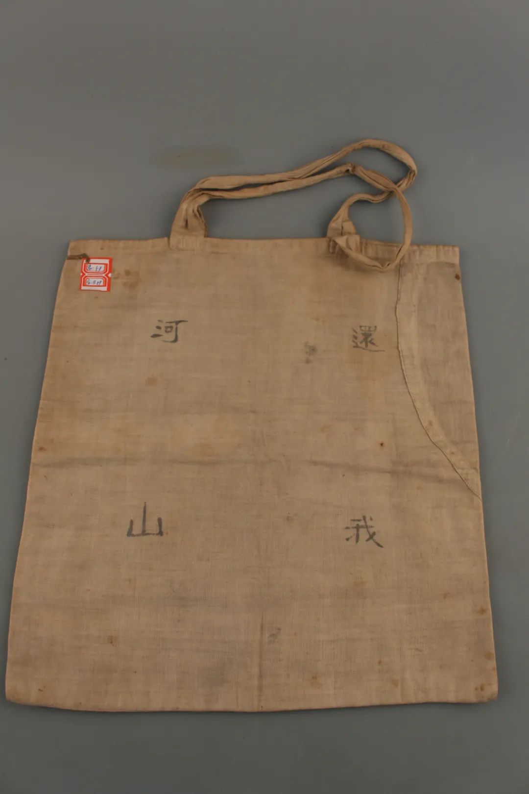 “還我河山”,車向忱夫婦用過的手提兜上,四個字依然清晰?!熬乓话恕笔伦兒螅瑬|北淪陷,教育家車向忱多次往返關內外,積極組織抗日救亡運動,還創(chuàng)辦了許多平民學校。這個手提兜原為白色,歷經(jīng)歲月和戰(zhàn)火,現(xiàn)已陳舊發(fā)黃。布兜正面繡有黑色“收復東北失地,1938”字樣,背面寫有“還我河山”字樣。