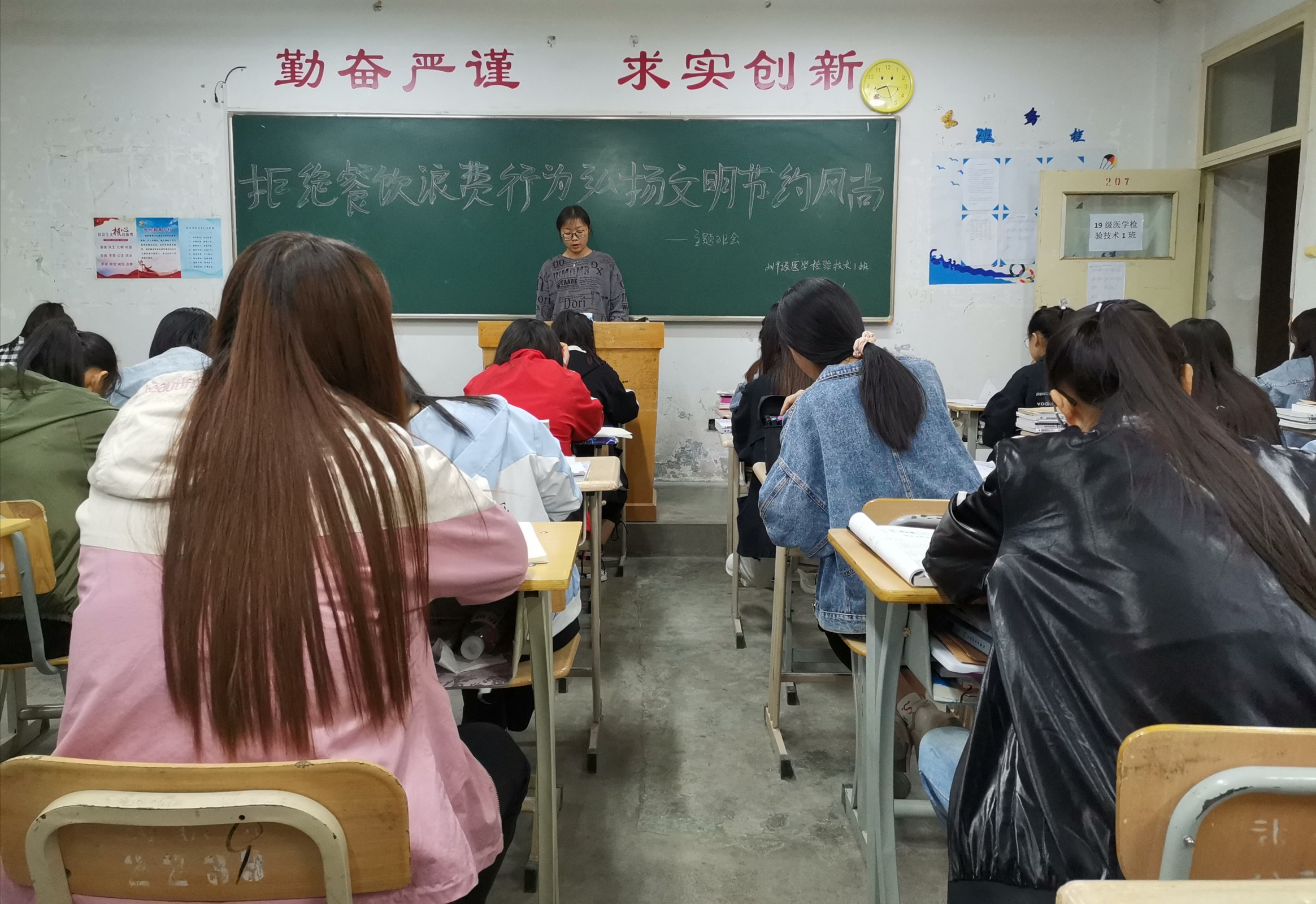 為深入貫徹落實(shí)習(xí)近平總書記關(guān)于制止餐飲浪費(fèi)行為的重要指示精神,確?!肮獗P行動(dòng)”取得實(shí)效,進(jìn)一步引導(dǎo)我系學(xué)生大力弘揚(yáng)勤儉節(jié)約傳統(tǒng)美德,培養(yǎng)勤儉節(jié)約良好習(xí)慣,全力營(yíng)造“浪費(fèi)可恥、節(jié)約光榮”的濃厚氛圍,醫(yī)學(xué)技術(shù)與信息管理系于9月16日各教學(xué)班召開主題班會(huì)活動(dòng)。