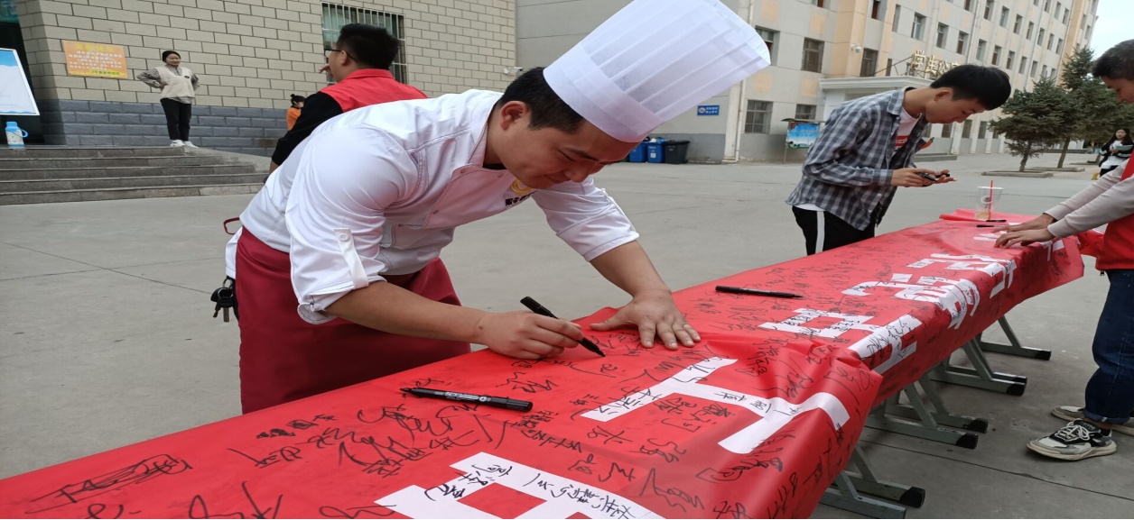 為了大力加強(qiáng)廣大師生節(jié)約糧食和光盤行動(dòng)的意識(shí),培養(yǎng)健康文明的就餐習(xí)慣。2020年9月16日武威職業(yè)學(xué)院機(jī)械制造系在學(xué)校食堂門口舉行了以“節(jié)約糧食?儉以養(yǎng)德”為主題的簽名活動(dòng)。
