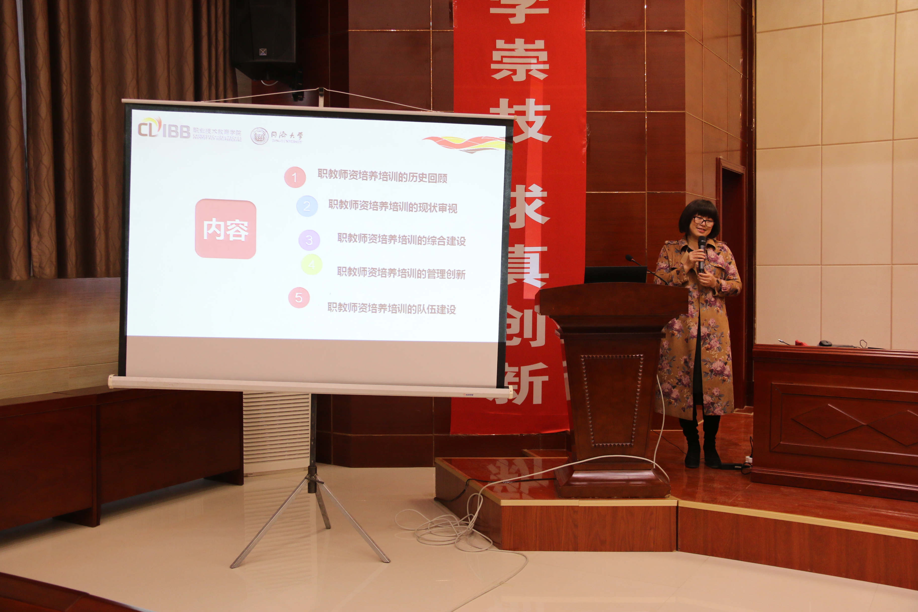 梅泓教授立足國(guó)家宏觀政策,以獨(dú)特的視角,從當(dāng)前中國(guó)經(jīng)濟(jì)發(fā)展新常態(tài)下的轉(zhuǎn)型與創(chuàng)新、職業(yè)教育新機(jī)遇的建設(shè)與創(chuàng)新及師資隊(duì)伍面臨的新挑戰(zhàn)與創(chuàng)新三個(gè)方面進(jìn)行了深度透析。梅泓教授語言幽默,理念新穎,會(huì)場(chǎng)氣氛熱烈。