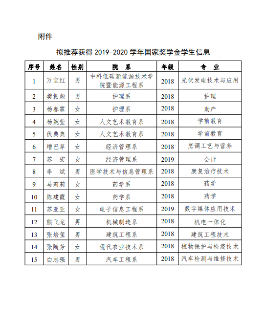 關(guān)于2019-2020學(xué)年國家獎(jiǎng)學(xué)金候選人的公示