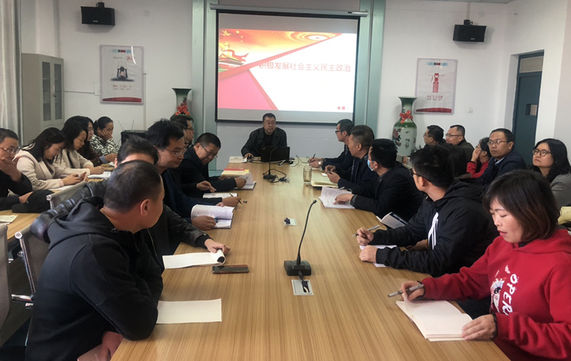 10月22日下午,武威職業(yè)學(xué)院馬克思主義學(xué)院副院長、副教授胡靜峰應(yīng)邀來到電子信息工程系,宣講《習(xí)近平談治國理政》第三卷。電子信息工程系全體教師參加了宣講會,系黨總支書記袁青年主持會議。