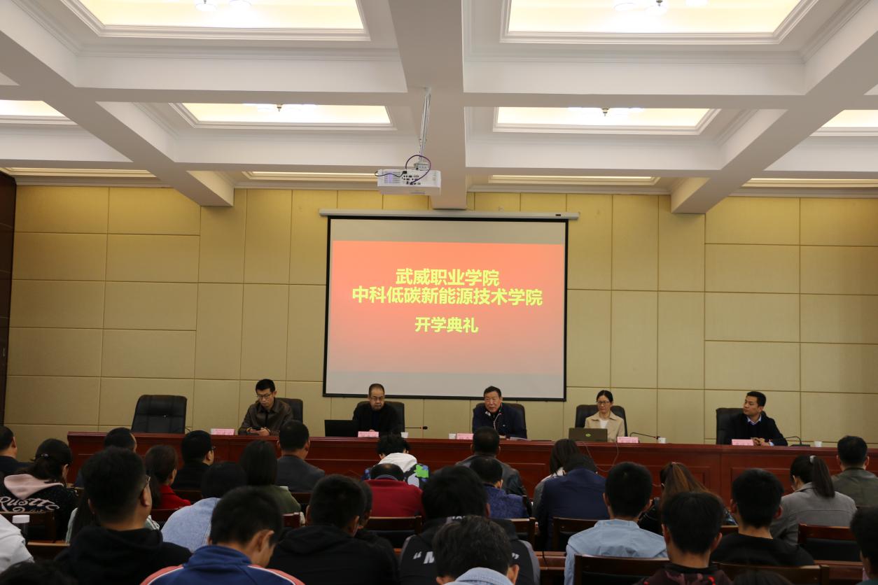 ??10月29日下午,中科低碳新能源技術(shù)學(xué)院在行樹樓北側(cè)報告廳召開2020級新生開學(xué)典禮。中國科學(xué)院先進核能創(chuàng)新研究院高級教育顧問、中科低碳新能源技術(shù)學(xué)院院長楊存忠教授,武威職業(yè)學(xué)院黨委副書記、中科低碳新能源技術(shù)學(xué)院副院長翟存祥教授,中國科學(xué)院上海應(yīng)用物理研究所副研究員、中科低碳新能源技術(shù)學(xué)院院長助理米麗娟博士,中科低碳新能源技術(shù)學(xué)院合作辦學(xué)辦公室主任、能源工程系黨組織書記胡建宏教授,中科低碳新能源技術(shù)學(xué)院合作辦學(xué)辦公室副主任、能源工程系主任黃述杰副教授,中科低碳新能源技術(shù)學(xué)院全體教師及2020級新生參加了此次大會。會議由黃述杰主任主持。