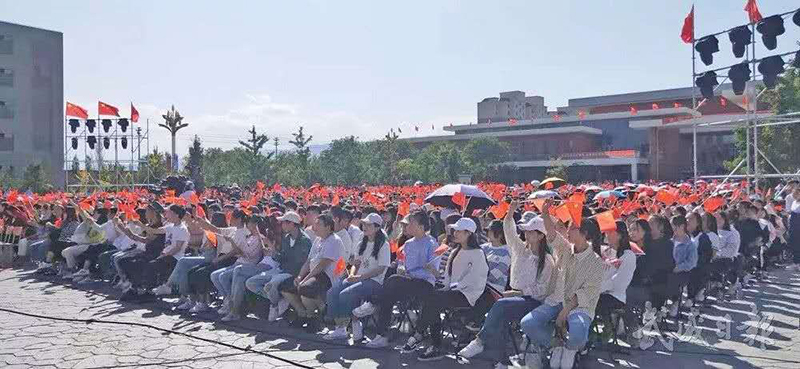 放歌新時(shí)代,筑夢(mèng)新征程。9月29日,由省文化和旅游廳、市政府主辦,市委宣傳部 、省文化館、市文體廣電和旅游局承辦的慶祝中華人民共和國(guó)成立70周年甘肅省百姓文化廣場(chǎng)惠民演出走進(jìn)武威職業(yè)學(xué)院,上演了一場(chǎng)美輪美奐的視聽盛宴,熱烈慶祝新中國(guó)成立70周年,謳歌70年來(lái)黨領(lǐng)導(dǎo)全國(guó)各族人民取得的豐功偉績(jī)。