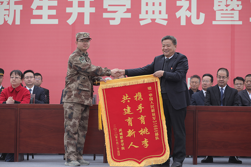 黨委書記、院長趙明向承訓(xùn)部隊(duì)贈(zèng)送錦旗