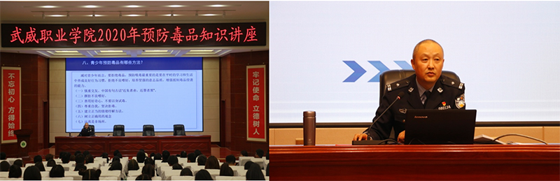 為進(jìn)一步加強(qiáng)學(xué)院毒品預(yù)防教育工作,不斷提高學(xué)生識(shí)毒、防毒、拒毒意識(shí),2020年11月6日下午,學(xué)院團(tuán)委邀請(qǐng)武威市公安局禁毒支隊(duì)政委、市禁毒辦副主任杜興林在菁英廳作了題為“健康人生 綠色無(wú)毒”預(yù)防毒品專題知識(shí)講座,師生代表共200余人聆聽講座。