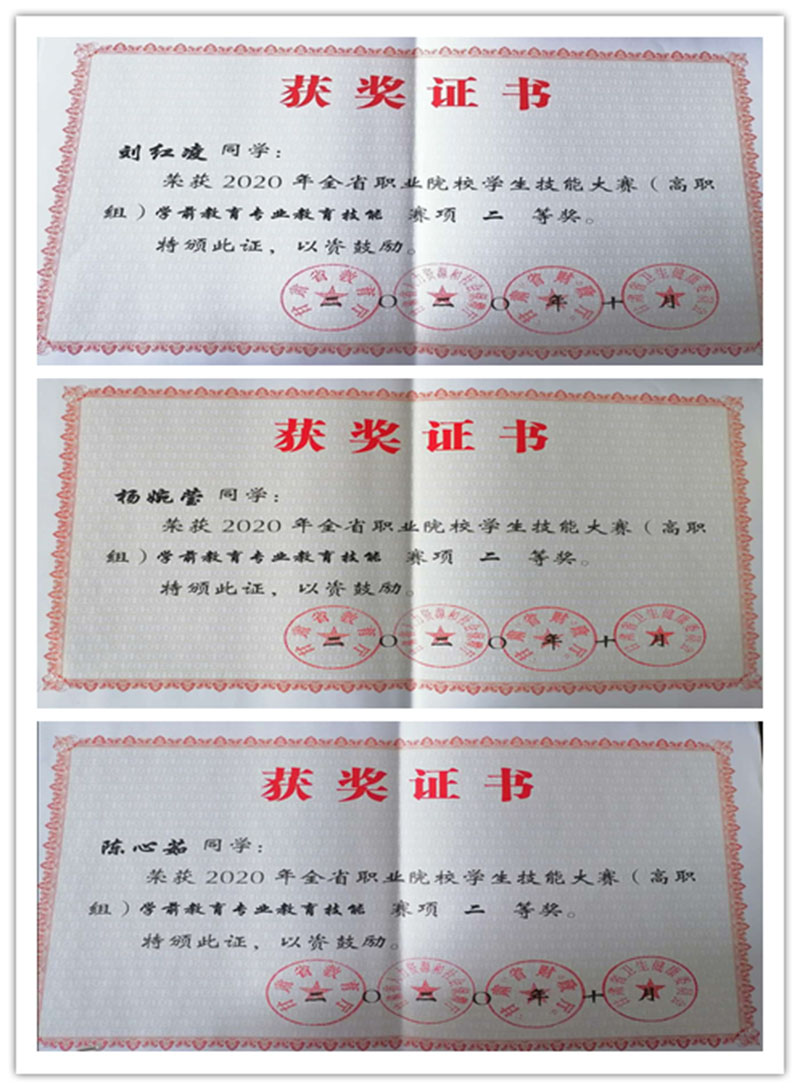 2020年10月在蘭州資源環(huán)境職業(yè)技術(shù)學(xué)院舉辦的2020年全省職業(yè)院校學(xué)生技能大賽(高職組)中,人文藝術(shù)教育系參賽的三組同學(xué)憑借深厚的理論基礎(chǔ)和嫻熟的技能操作,在強(qiáng)手如林的選手中脫穎而出,獲得大賽二等獎1項(xiàng),三等獎2項(xiàng)。