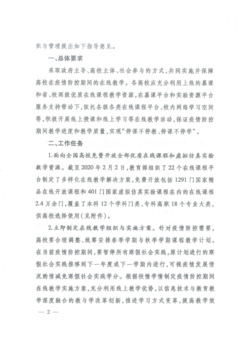 教育部做好普通高等學(xué)校在線教學(xué)組織與管理工作的指導(dǎo)意見