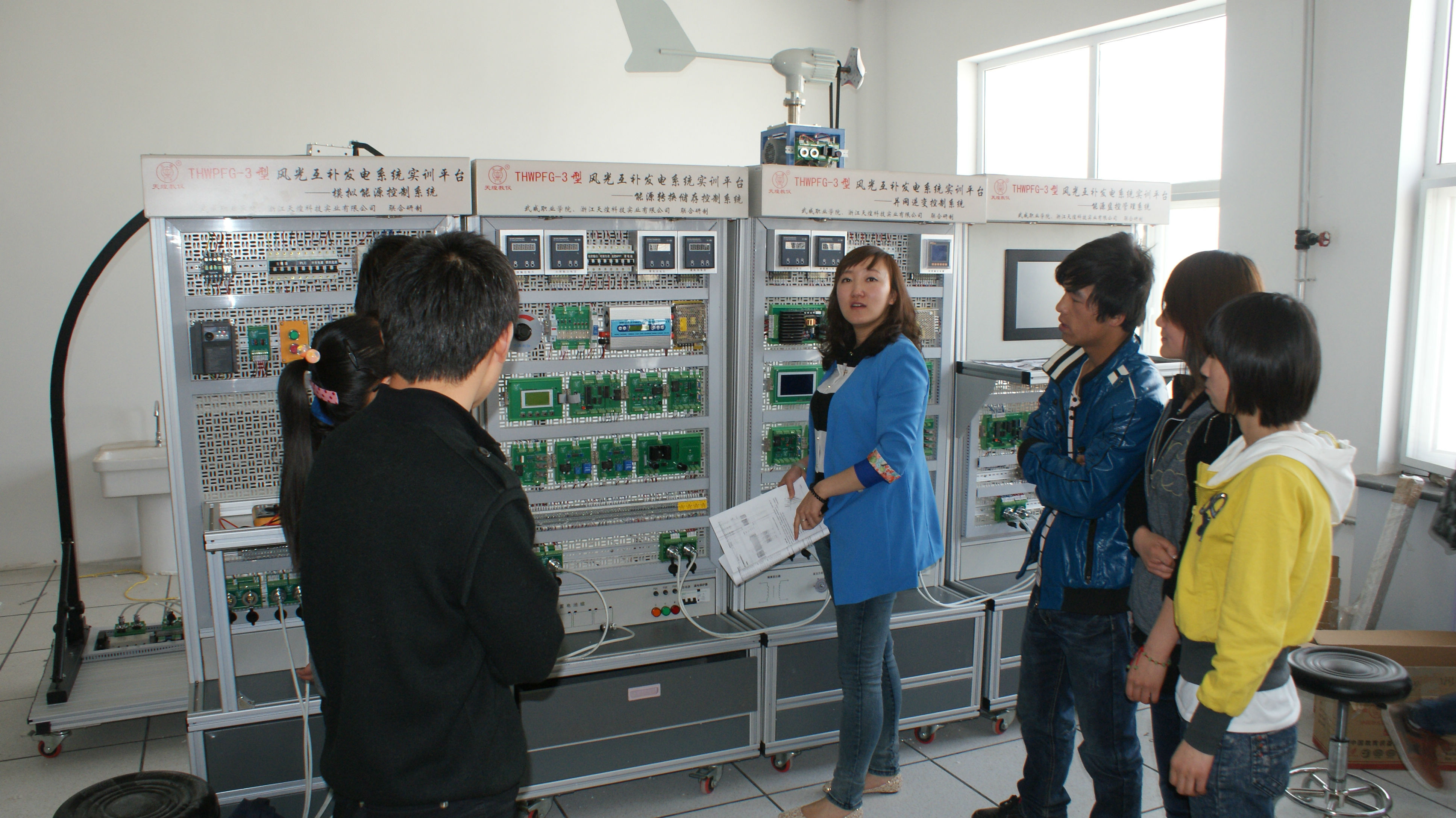 農(nóng)村能源模擬實(shí)訓(xùn)室現(xiàn)有設(shè)備主要有浙江天煌公司和我院合作研發(fā)的風(fēng)光互補(bǔ)發(fā)電實(shí)訓(xùn)平臺(tái)1套、太陽(yáng)能光伏發(fā)電原理實(shí)訓(xùn)系統(tǒng)1套、計(jì)算機(jī)26臺(tái)套、電子白板、投影等設(shè)備。