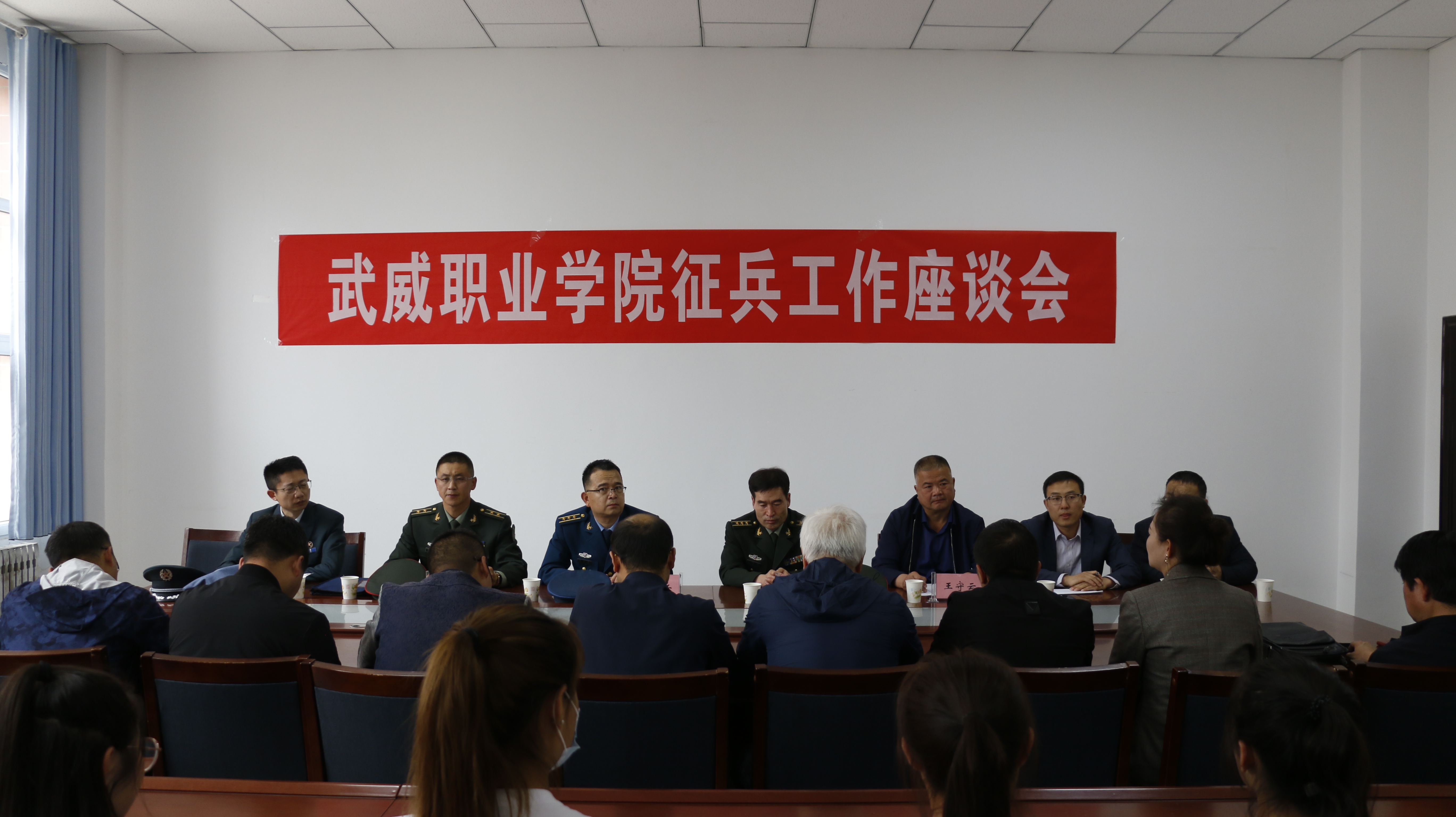為扎實(shí)做好2021年國(guó)防教育及征兵工作,激發(fā)廣大學(xué)生參軍報(bào)國(guó)熱情,5月18日下午,學(xué)院在大學(xué)生活動(dòng)中心舉辦征兵宣傳動(dòng)員活動(dòng)。武威軍分區(qū)動(dòng)員處上校處長(zhǎng)張尖兵、涼州區(qū)人武部上校政委丁俊強(qiáng)、涼州區(qū)人武部中校副部長(zhǎng)何志強(qiáng)和學(xué)院黨委委員、副院長(zhǎng)王守云出席活動(dòng),學(xué)院各教學(xué)院系征兵專(zhuān)干及學(xué)生代表200余人參加活動(dòng)。