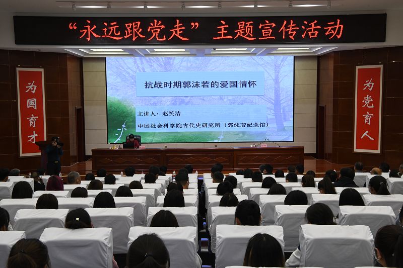 5月21日,中國社會科學院古代史研究所黨委書記、郭沫若紀念館原館長趙笑潔來學院作《抗戰(zhàn)時期郭沫若的愛國情懷》專題講座,學院在家院領導、副科級以上干部、師生代表共計220人聆聽了講座。