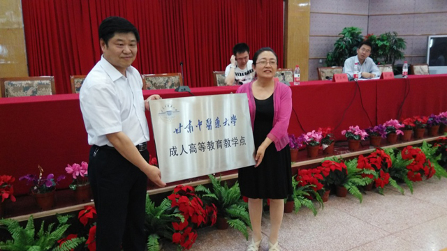 頒發(fā)“甘肅中醫(yī)藥大學(xué)成人高等教育教學(xué)點”牌匾
