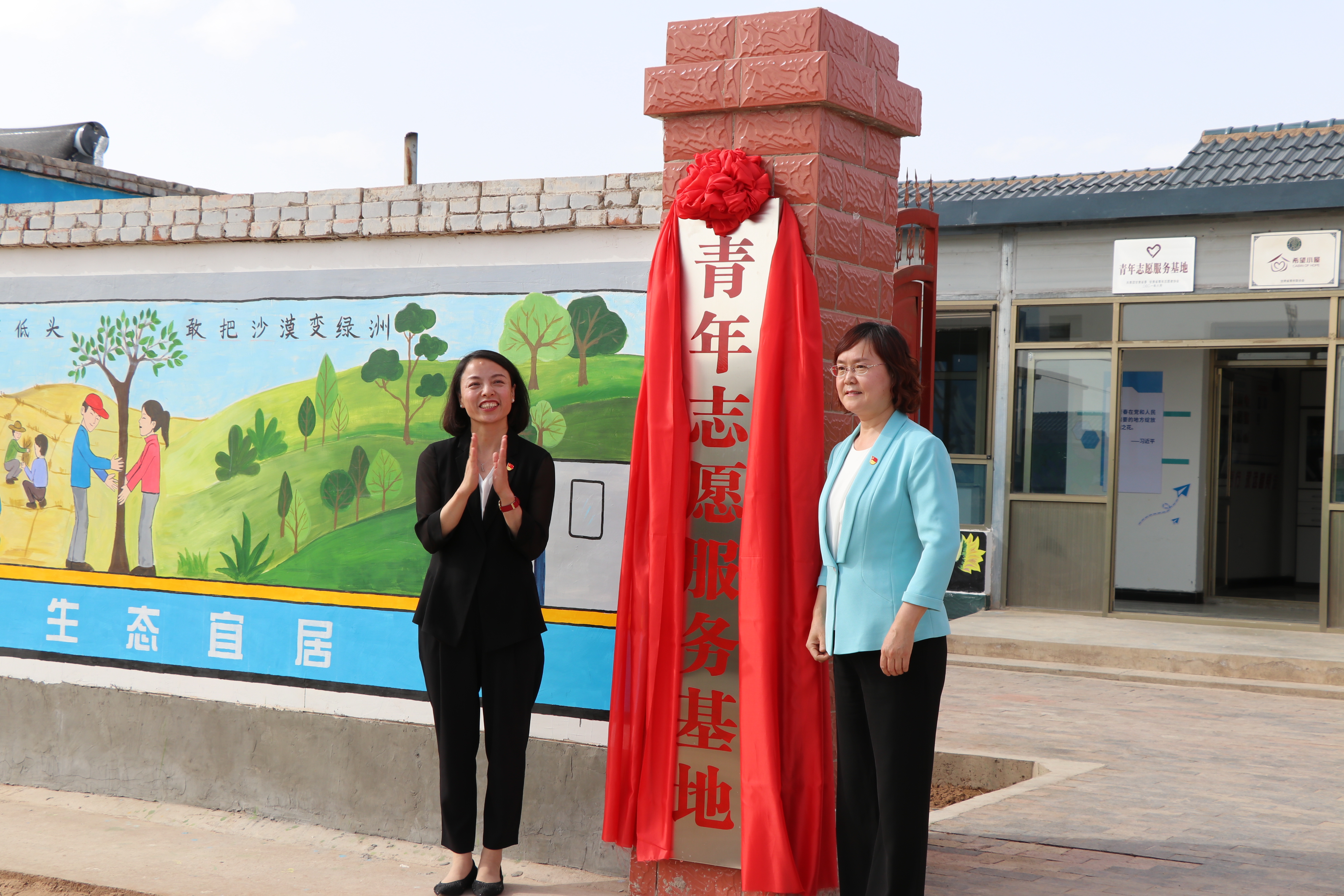 在建黨100周年、習(xí)近平總書記視察甘肅兩周年來臨之際,學(xué)院與共青團(tuán)甘肅省委在古浪縣富民新村共建了青年志愿服務(wù)基地。6月21日下午,全省鄉(xiāng)村振興青年志愿者服務(wù)行動(dòng)誓師大會(huì)在古浪縣富民新村召開,團(tuán)省委書記蔣小麗、武威市政府副市長王雁為基地揭牌。