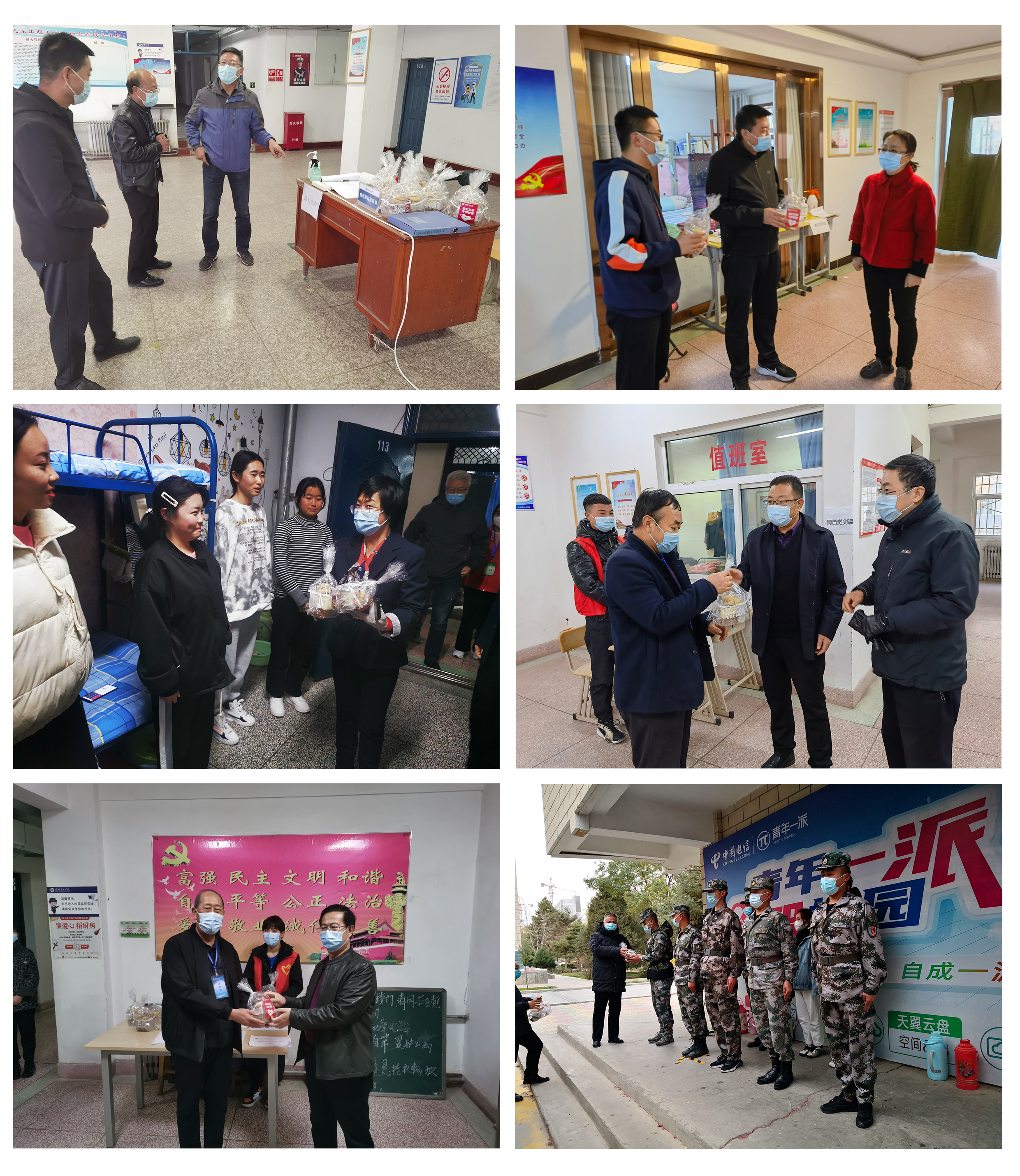 最后,學(xué)院領(lǐng)導(dǎo)看望在校留觀學(xué)生,送上慰問品并詳細詢問了學(xué)習(xí)生活情況,悉心叮囑他們做好自我防護,保持良好心態(tài),遵守學(xué)院各項規(guī)章制度。
