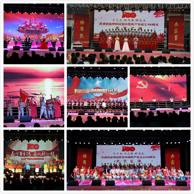 “學(xué)黨史 頌黨恩 跟黨走”——6月29日晚上,武威職業(yè)學(xué)院慶祝建黨100周年文藝匯演在學(xué)生活動(dòng)中心前廣場隆重舉行。